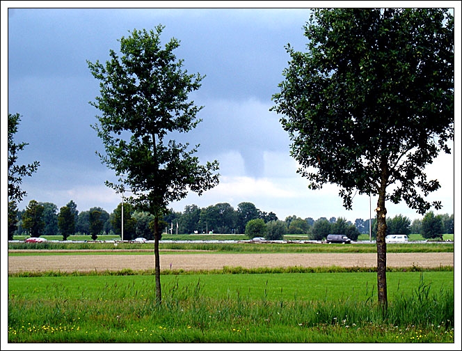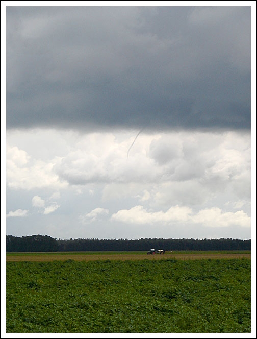 Duidelijk is te zien dat we de hoos dichter zijn genaderd. De derde foto is nog iets later.