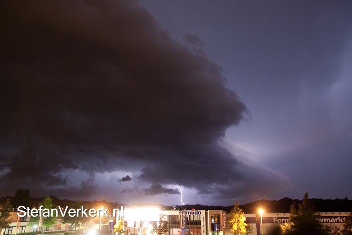Was volgens mij de doorkomst van de shelfcloud. Die shelf was behoorlijk hoog en bestond uit meerdere lagen, waaronder een soort verlaagde basis. Niet te verwarren met een wallcloud denk ik.