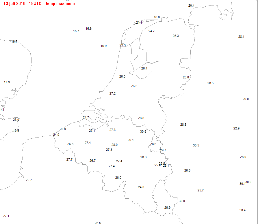 Uiteindelijk had ik hier 30.2°C in Neeroeteren en kwam Kleine Brogel uit op 30.5°C.