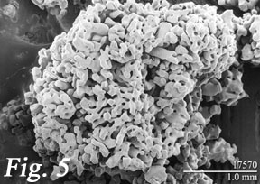 graupel in het Engels) noemen. Van de oorspronkelijke sneeuwvlok(ken) is weinig meer te herkennen, maar onderstaand voorbeeld is wel een vergevorderd stadium. Dit balletje is al vele keren op- en neergegaan in de buienwolk.