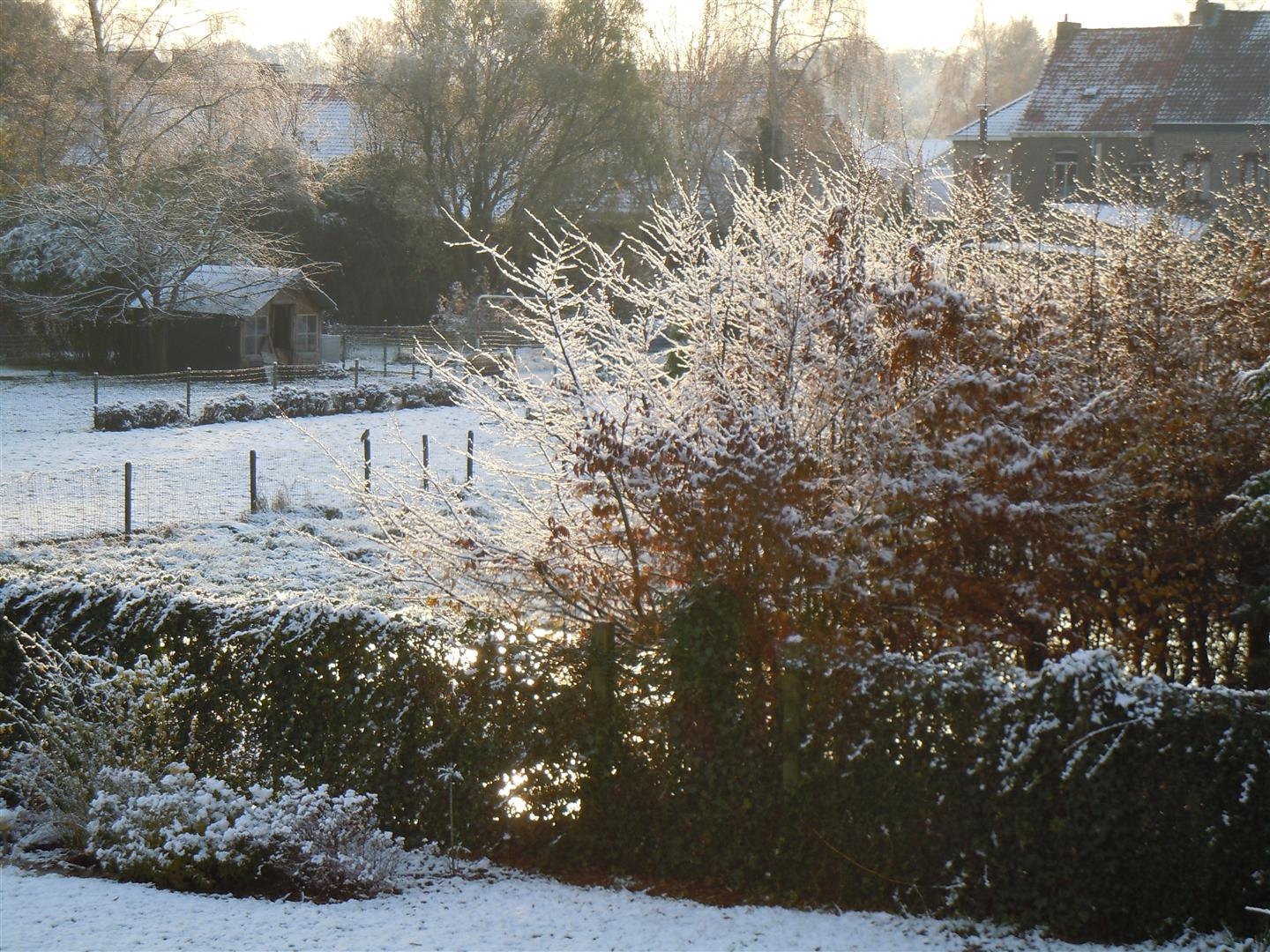Gelukkig kregen we in de loop van de avond en nacht nog wat van de uitstervende buien uit West-Vlaanderen mee, waardoor er hier toch nog een mooi laagje van 2 tot plaatselijk 3cm is ontstaan. De verschillen op korte afstand zijn zeer groot, zo ligt er namelijk 2km naar het Noorden niets van sneeuw en 15 km naar het zuiden 7-8cm. 's Ochtends klaarde het hier volledig uit waardoor de sneeuw zich in alle glorie onthulde in de zon