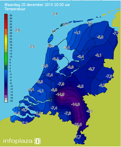 Staat 20.00 op deze kaart, maar om 20.00 uur is het in de Bilt -8.5 graden! Duurde ook een tijdje voordat data actueel was, waarschijnlijk een foutje.