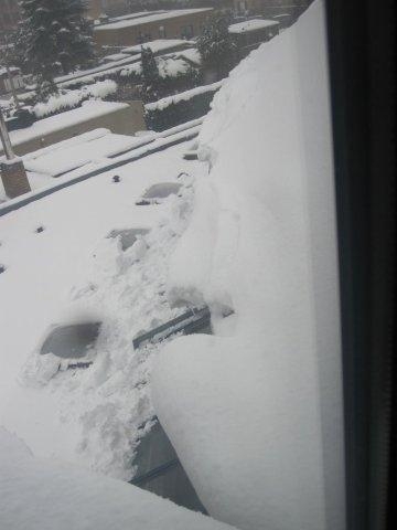 Hier toch 1 foto van paketten sneeuw die een gevaar kunnen vorman als ze zich opkrullen tot een 'geperste' ijs/sneeuwblok die vanop hoogte zich naar beneden stort!