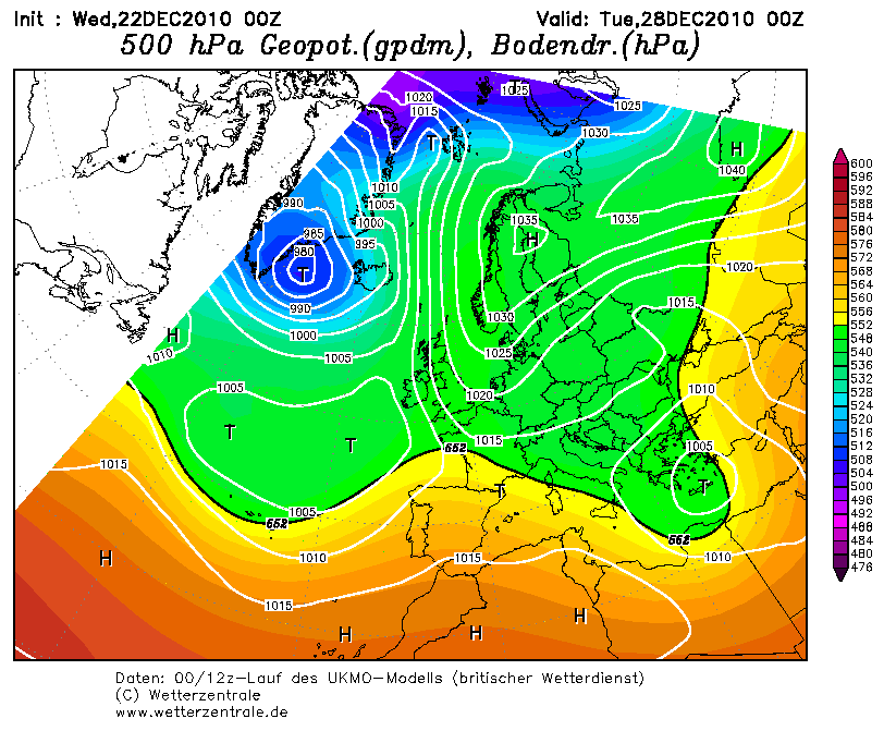 Afgelopen dagen was dit model zeer consistent met hogedruk in het noorden en blijvende koud. Telkens weer kwam UKMO met een koude oplossing terwijl de andere modellen het regelmatig in dat opzicht lieten afweten.