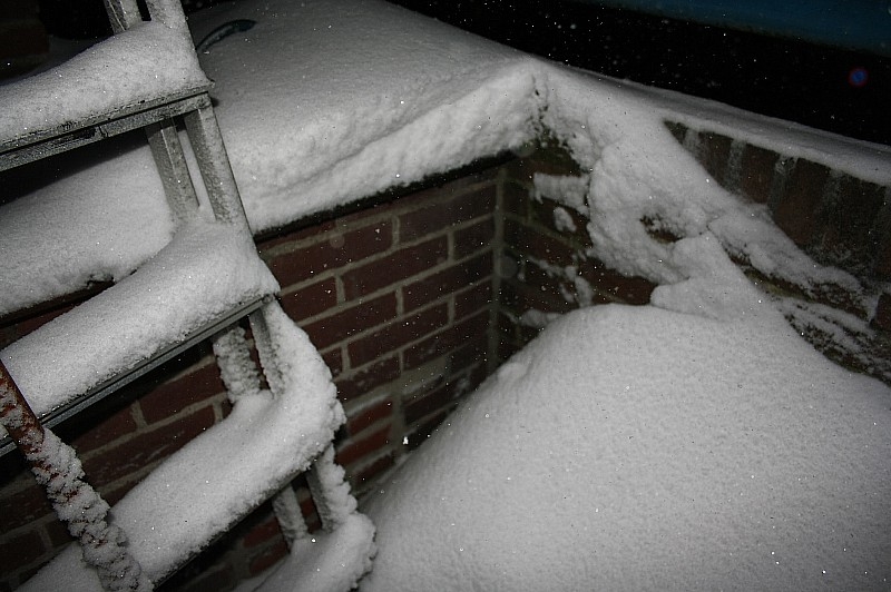 Zeer veel sneeuw op balkon, zelfs tot 55,0 cm sneeuwduinen, zojuist gemeten te hebben.