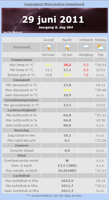 Weerstation Hardinxveld-Giessendam 29 juni 2011