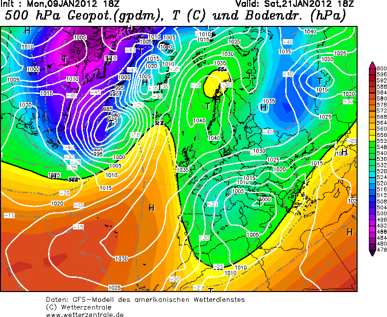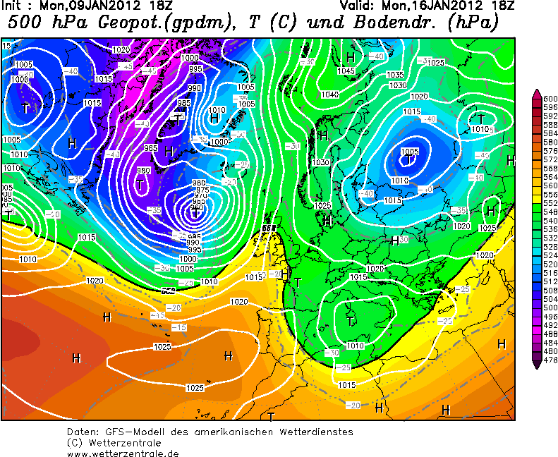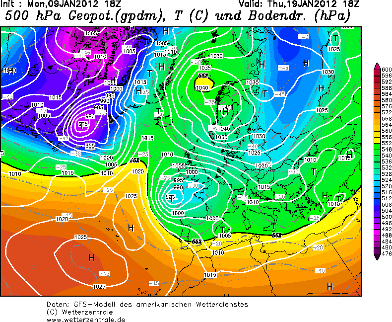 Tja, ZW van IJsland ligt op 168 uur wel een motor van een paar triljoen PK of zo. Dan gaat het bovenin hard en valt de echte dump een paar duizend km meer noordelijk. Tegelijkertijd zien we uiterst links op de kaart een nieuwe mixer langs de 552 dam scheren. Wat verderop in de tijd komt dan het inmiddel willoze afgescheiden oostelijk deel van de poolwervel in een bocht afzakken. Die warmbloedige mixer maakt natuurlijk geen schijn van kans tegen deze arctische massa's en kiest op 240 uur het hazenpad richting de middelandse zee om daar nog een poging te wagen om als Genualaag aan een 2e leven te beginnen. Ook daar volgt een terechte correctie op. Hier in Vleuten is de huiskamer inmiddels in een pub veranderd