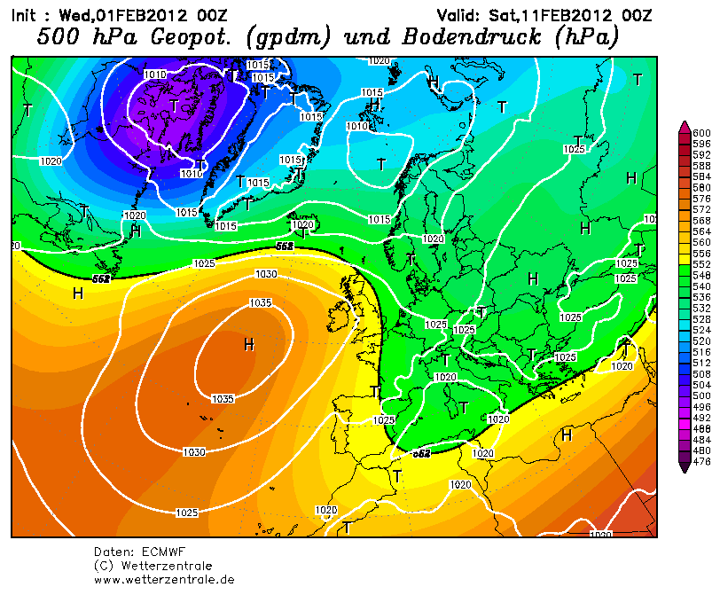 Zoals al eerder aangegeven maken we een goede kans dat we richting half februari naar een Atlantische Rug gaan, al dan niet met Groenlandaspiraties. Zelf denk ik dat de hogedrukinvloed volgende week wat langer gaat aanhouden dan nu door EC wordt verwacht. Nadien zachte lucht uit het westen, waarna de wind meer NW/N zou moeten worden. We wachten af