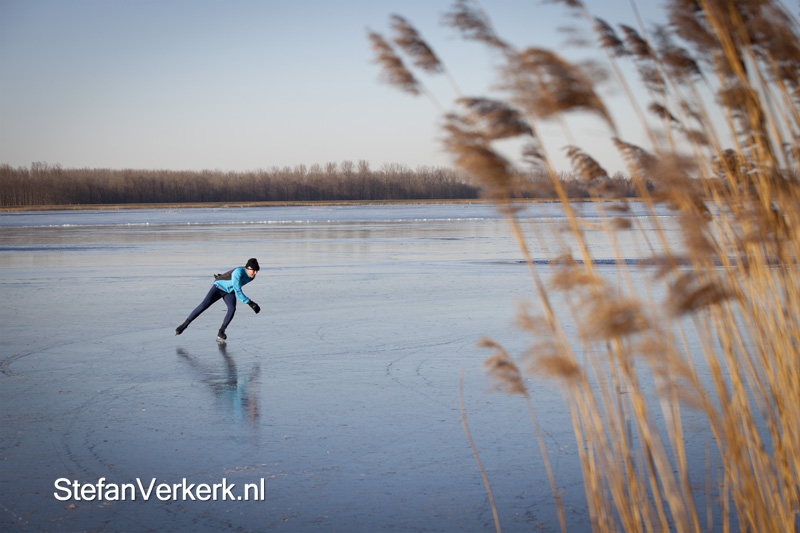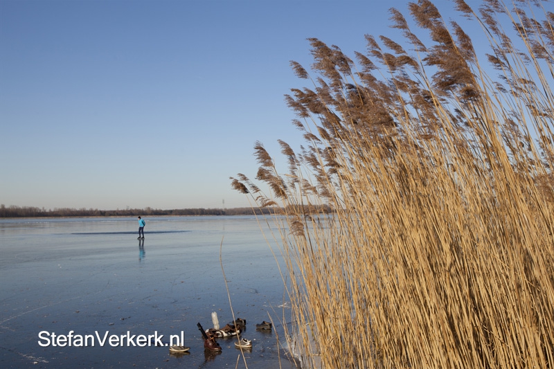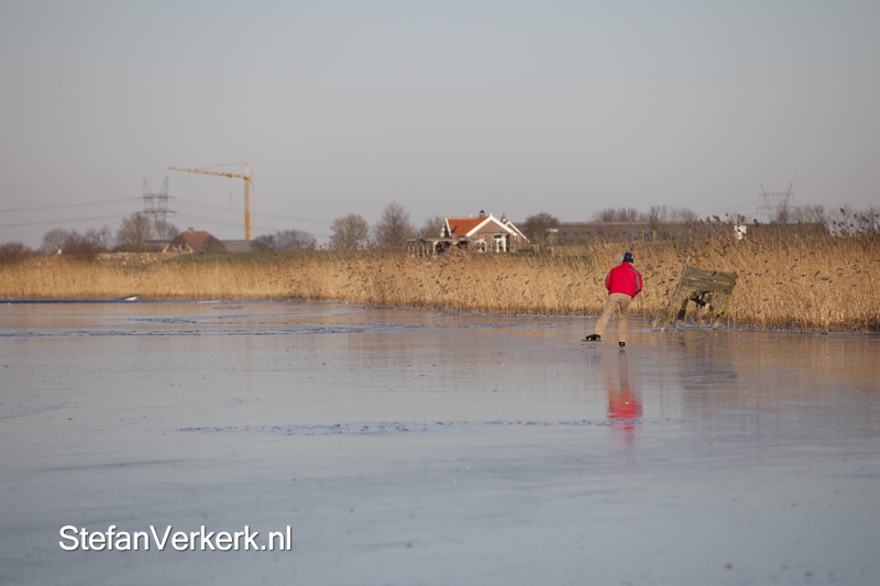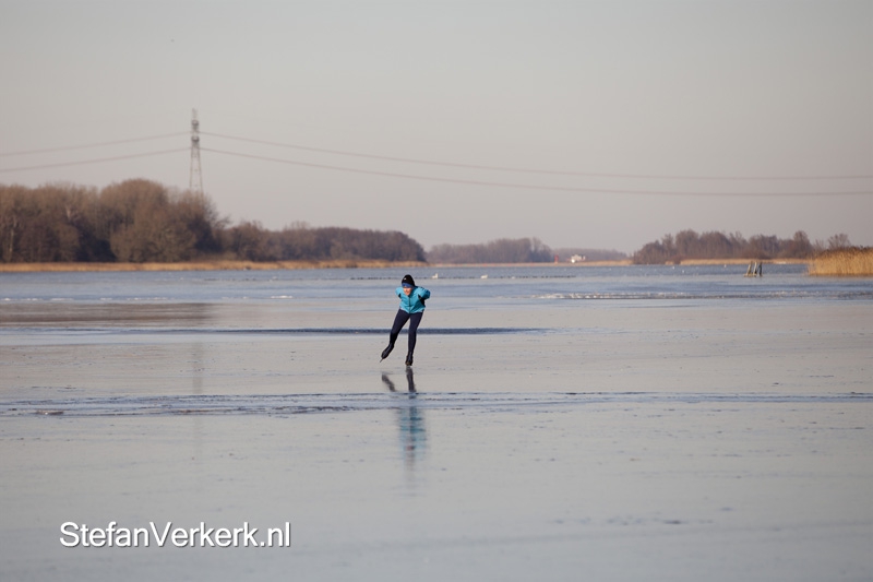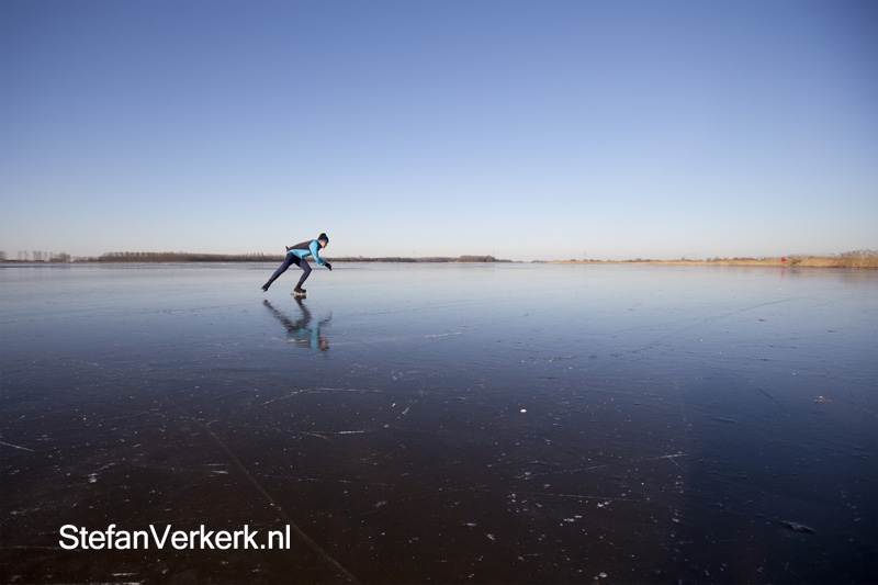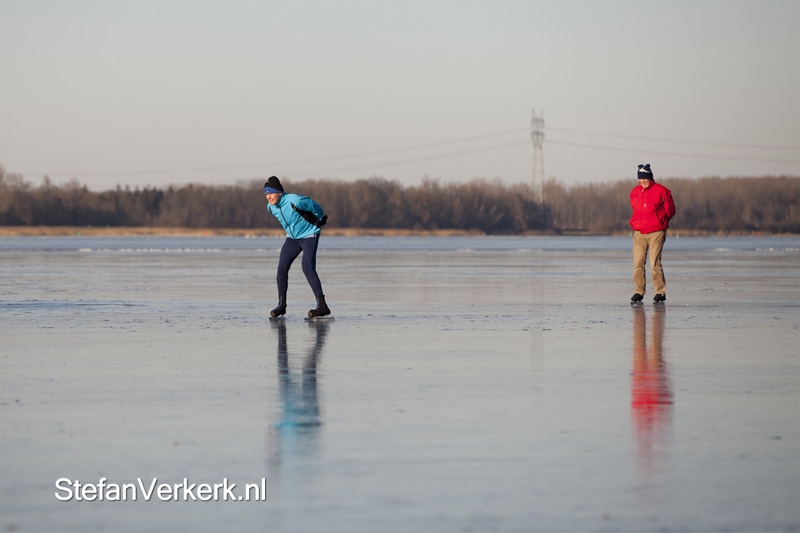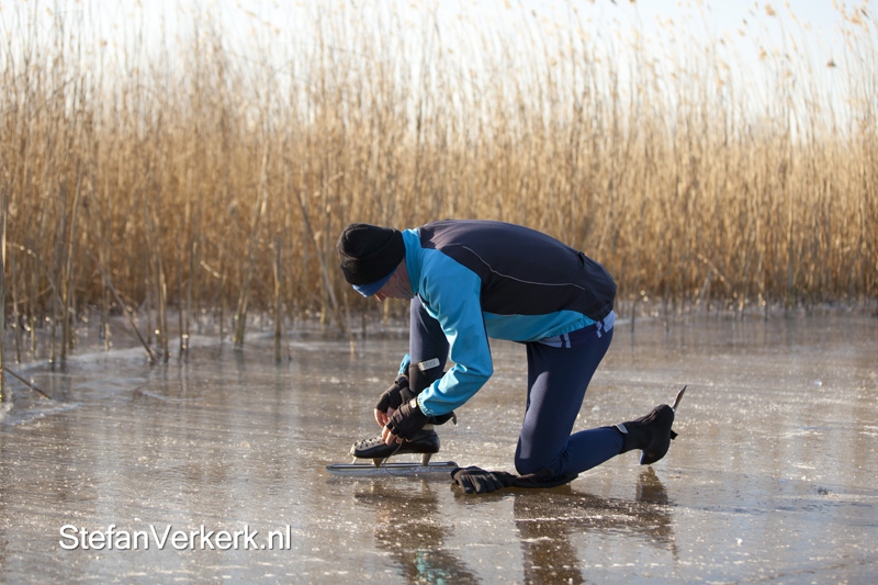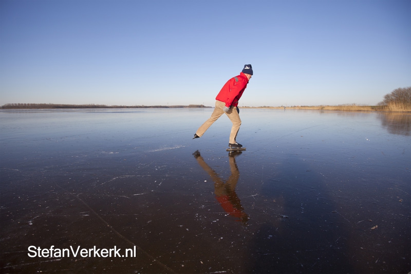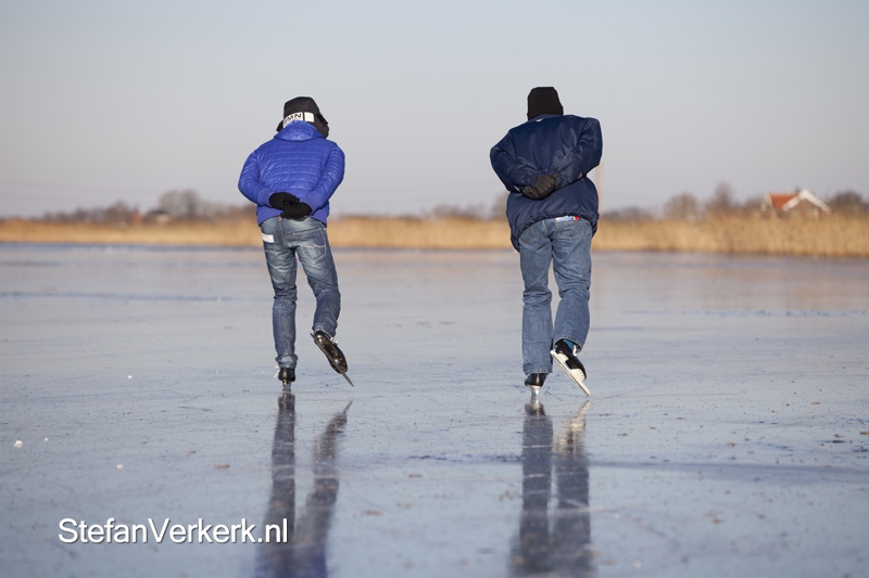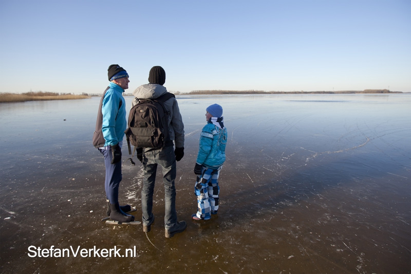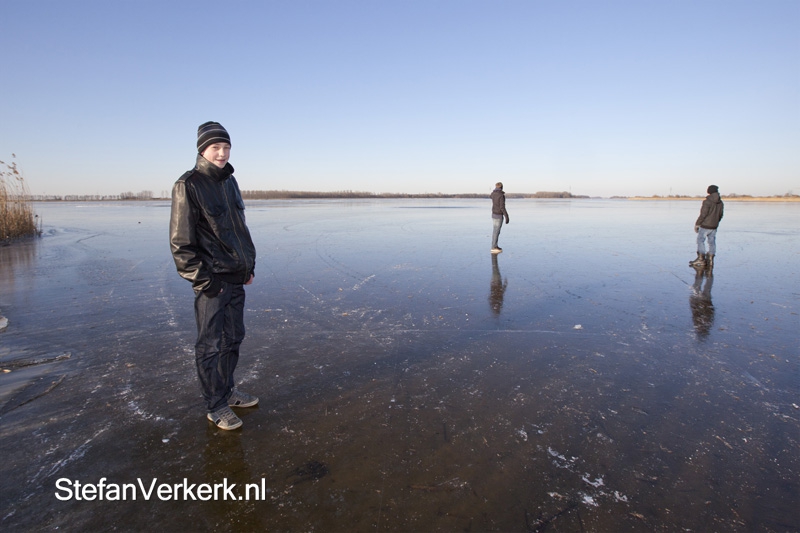 Enkele waaghalzen hebben al rondjes geschaatst op het ijs van het Veluwemeer bij Noordeinde (Gld) bij Elburg. Ik ben samen met mijn overbuurjongen en zijn broertje ook het ijs op geweest en dat was prima te doen. Geen eens gekraak. Iets verder van de kant waren er wel wakken, dus het is nog wel vrij riskant. Desondanks prachtig zwart ijs! Schitterend!