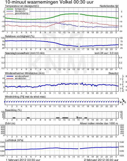 RV 39 %, Tact -6.9°C en krachtige wind. Heerlijk winterweer