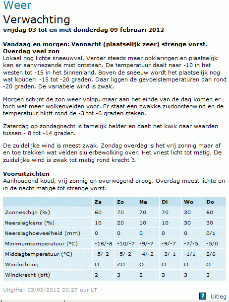 vrijdag 03 tot en met donderdag 09 februari 2012
