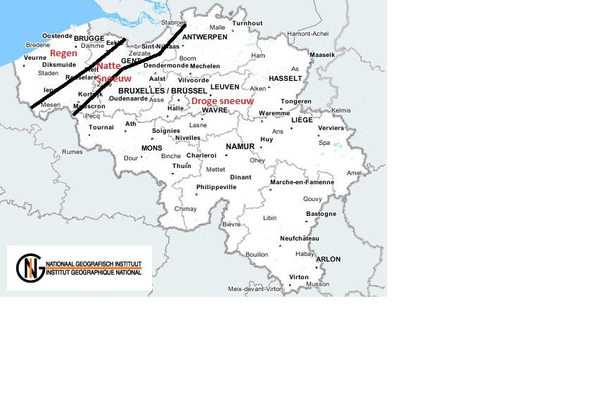 Gert, mijn bescheiden ervaring leert mij dat in de soort gevallen er regen valt tot pakweg 25km landinwaarts, er ten westen van de lijn Kortrijk-Gent-St.Niklaas natte sneeuw valt, en ten zuiden daarvan droge sneeuw. Al vaker in dit soort situaties (met Kim De Meester Aaigem ook een weerwoorder) vastgesteld dat er tot Wetteren een sneeuwlaag ligt waarna het eventuele sneeuwdek tussen Wetteren en Gent snel afneemt. Als ik nu de kaarten bekijk denk ik dat we hier juist goed gaan zitten (je moet rekenen dat we toch een 85km van zee verwijderd zijn en bovendien heel wat punten rond de 70-100m hoogte hebben)