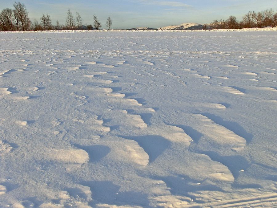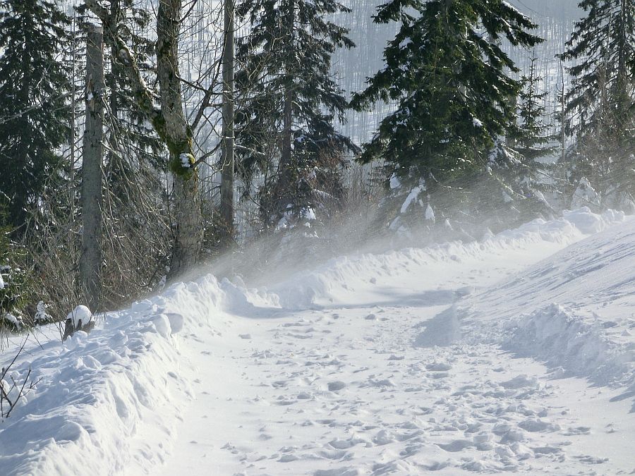 Beneden de 500 meter hoogte lag er amper iets van sneeuw ondanks de snijdend koude oostenwind die toen steeds sterker werd.