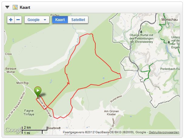 Ik ben gestart vanaf de Botrange en zo een route gelopen tot nabij de Duitse grens, zie het kaartje.