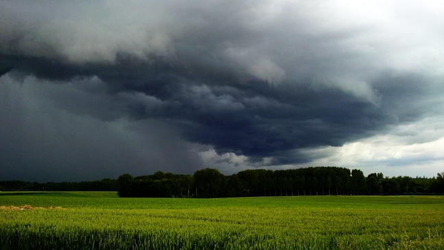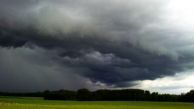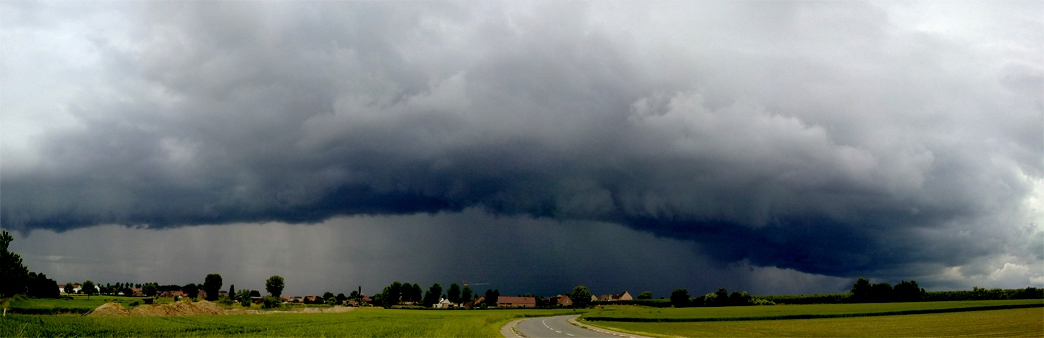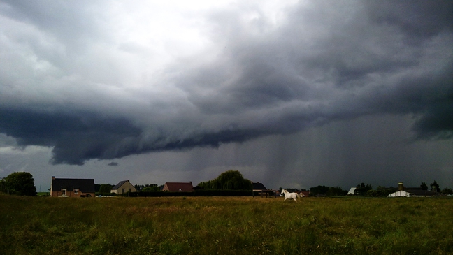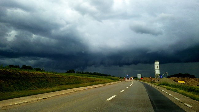 Net te laat om de arcus vast te leggen. Heb er wel twee plaatjes van genomen toen ik voor een (erg lang) rood licht stond te wachten. Nadien leek het onweer wat uit te doven. Hier zijn de plaatjes: