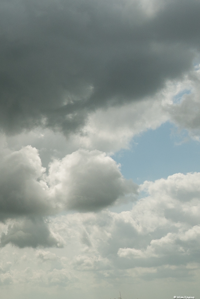 En zeker niet tussen al die plukkerige verwaaide wolken..