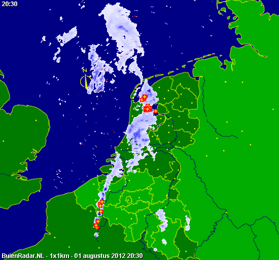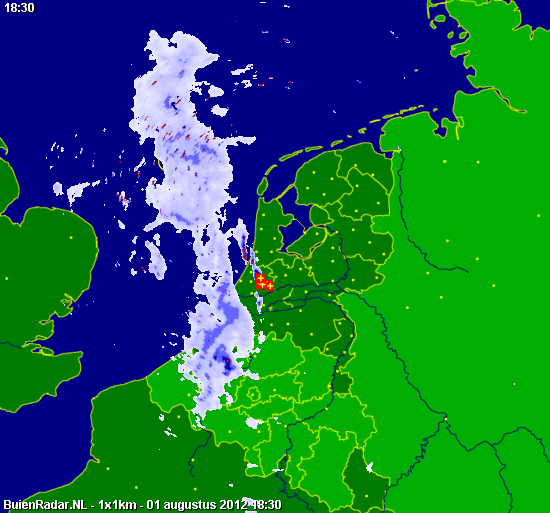 Rond de klok van 18.30 uur ontstond ter hoogte van Zoetermeer dan eindelijk de eerste onweersbui. Deze groeide in rustig tempo verder om vervolgens noordoostelijk te trekken.