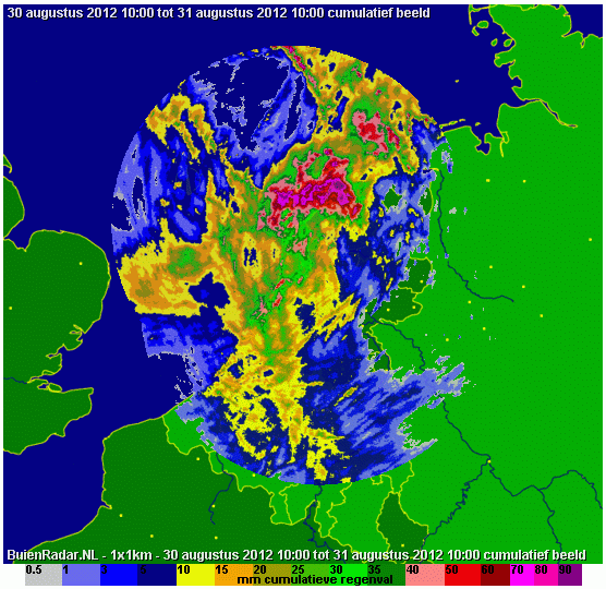 Buienradar cumulatief. Indrukwekkend beeld   ( 1083)