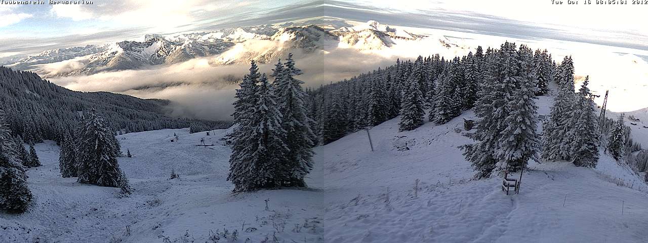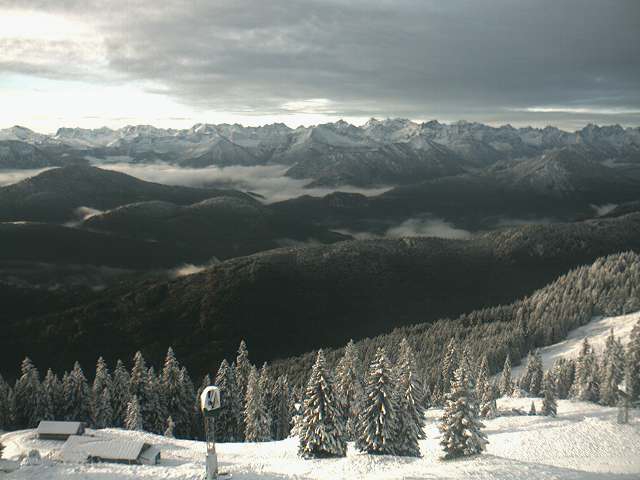 In het Spitzingseegebied, van het bergstation van de Taubensteinbaan (ca. 1500 m), uitzicht richting zuidwesten naar het Karwendel en de Guffert