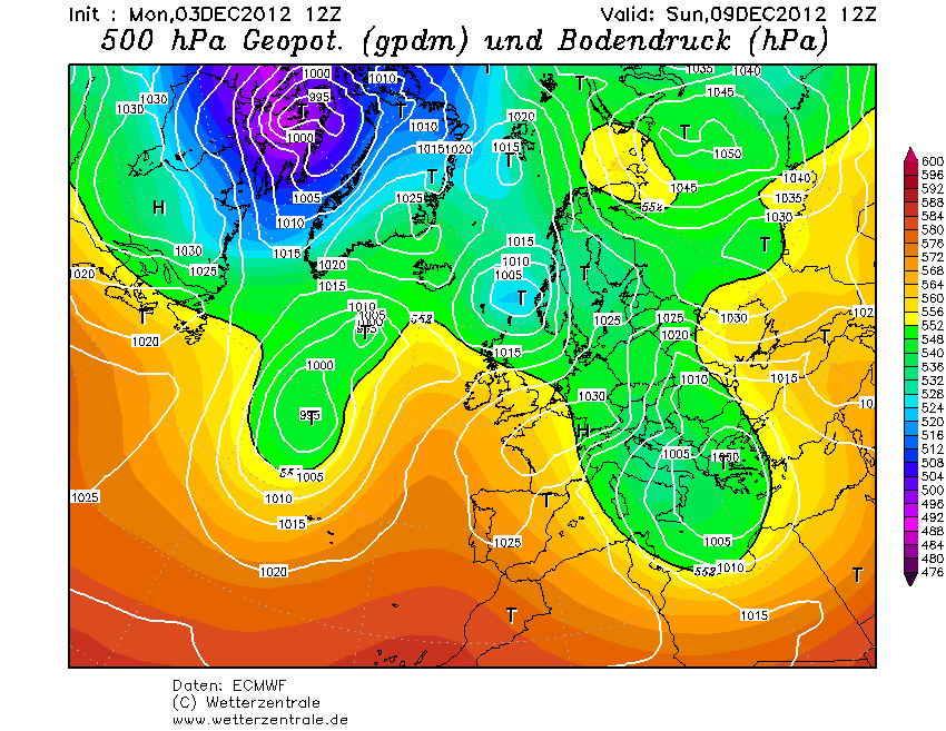 Zuidwestelijke winden. Lagedrukgebied in deze run noordelijk.