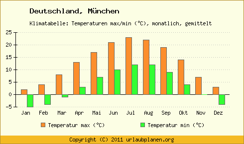 Vergelijk het maar eens met de gemiddelde maximumtemperaturen in München door het jaar heen: