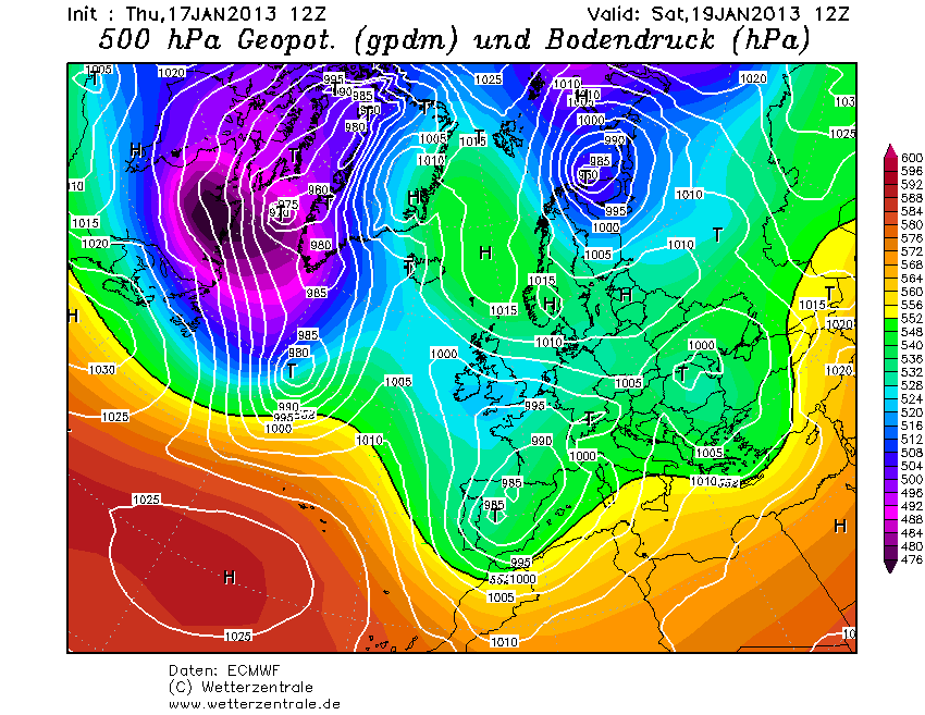 +168 uur. Luchtdruk stijgt weer boven Scandinavie.