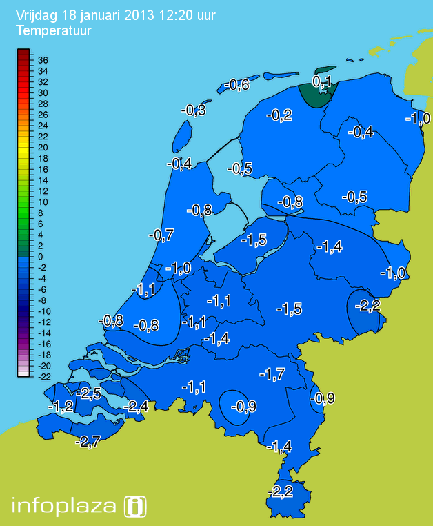 Vrijwel overal vorst, gelijkmatig verdeeld, geen grote verschillen. Prachtig.