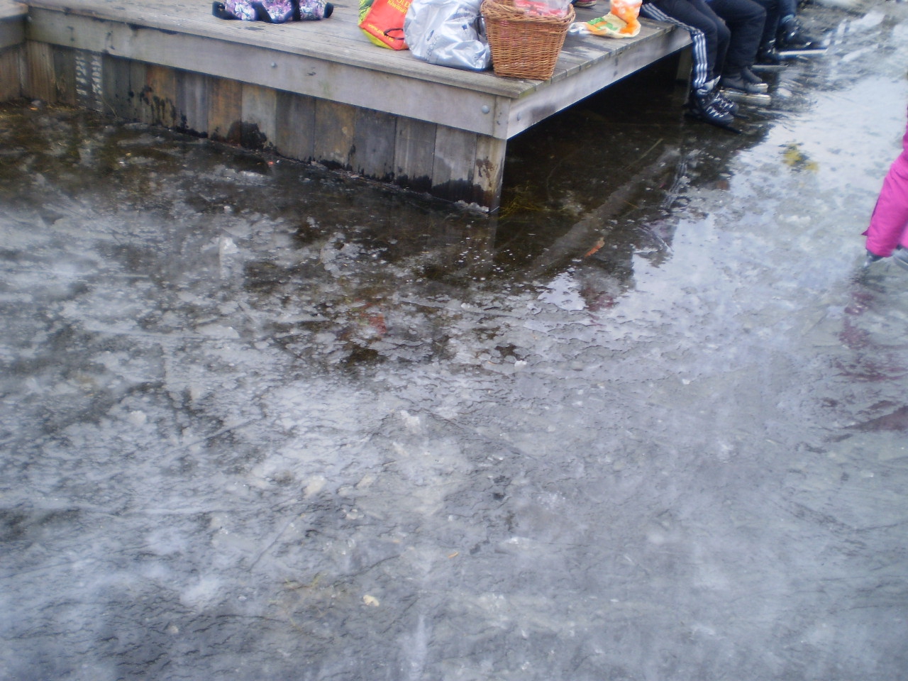 Het gaat nog net, hier en daar wat water op en langs het ijs.