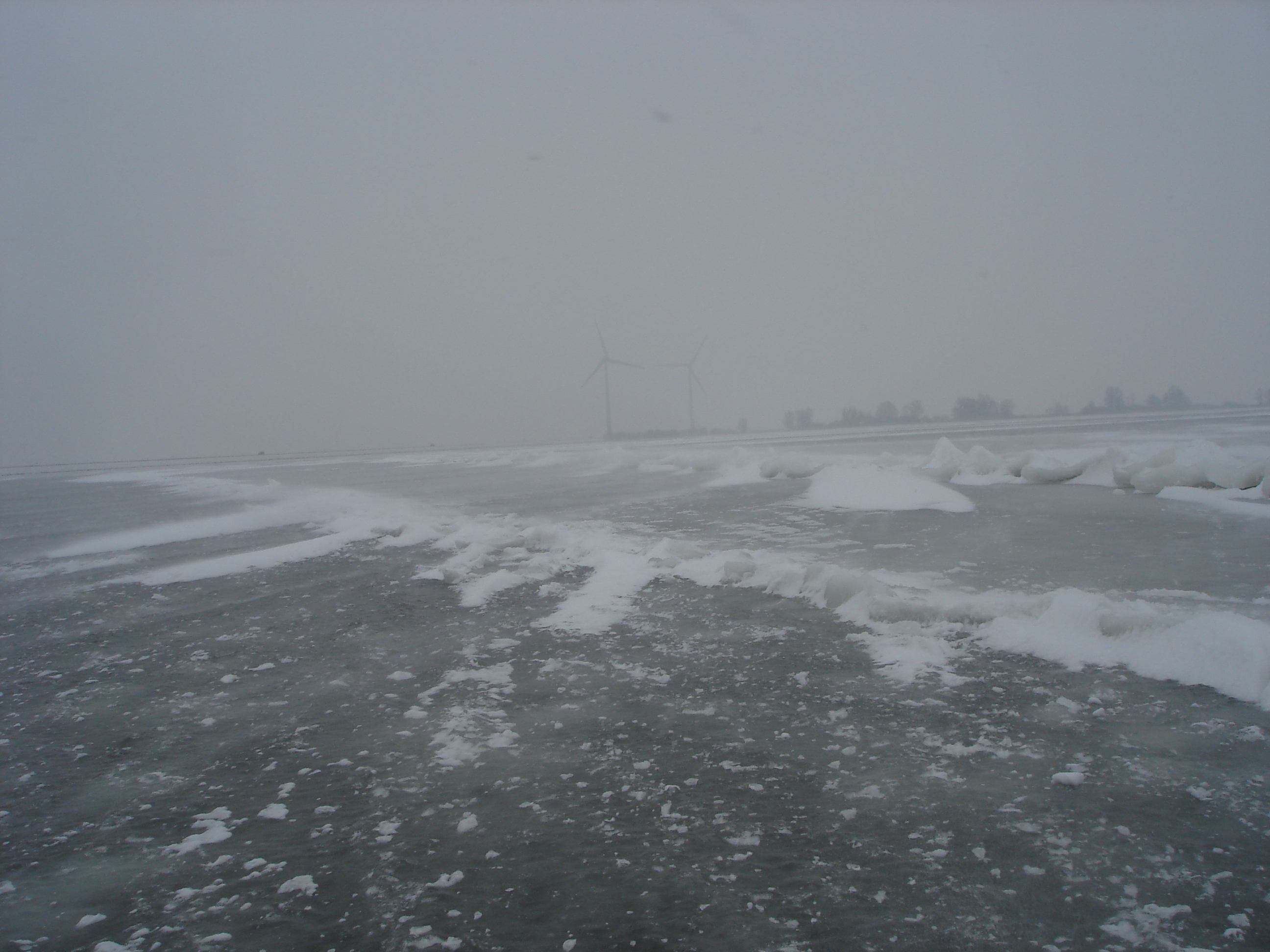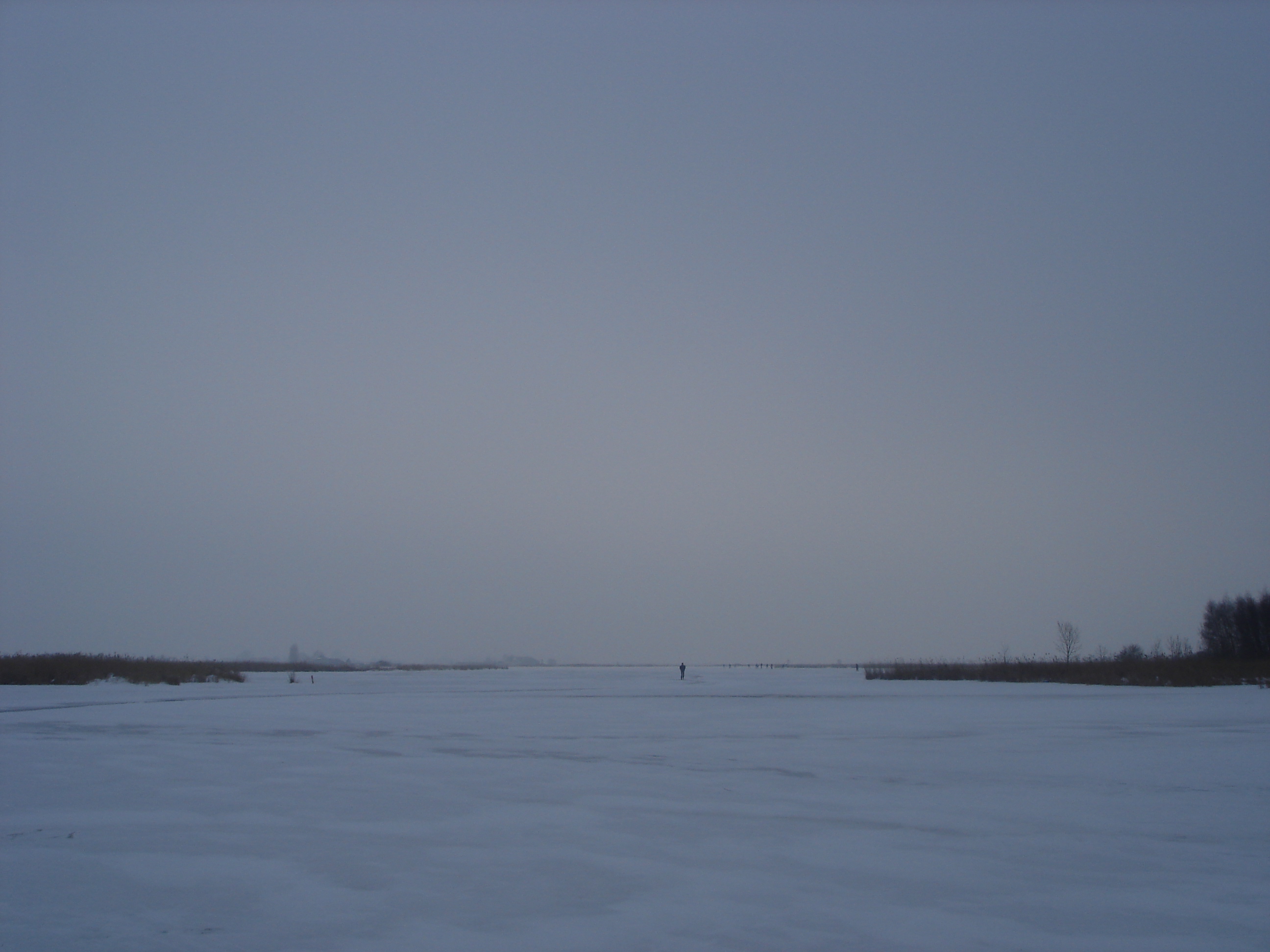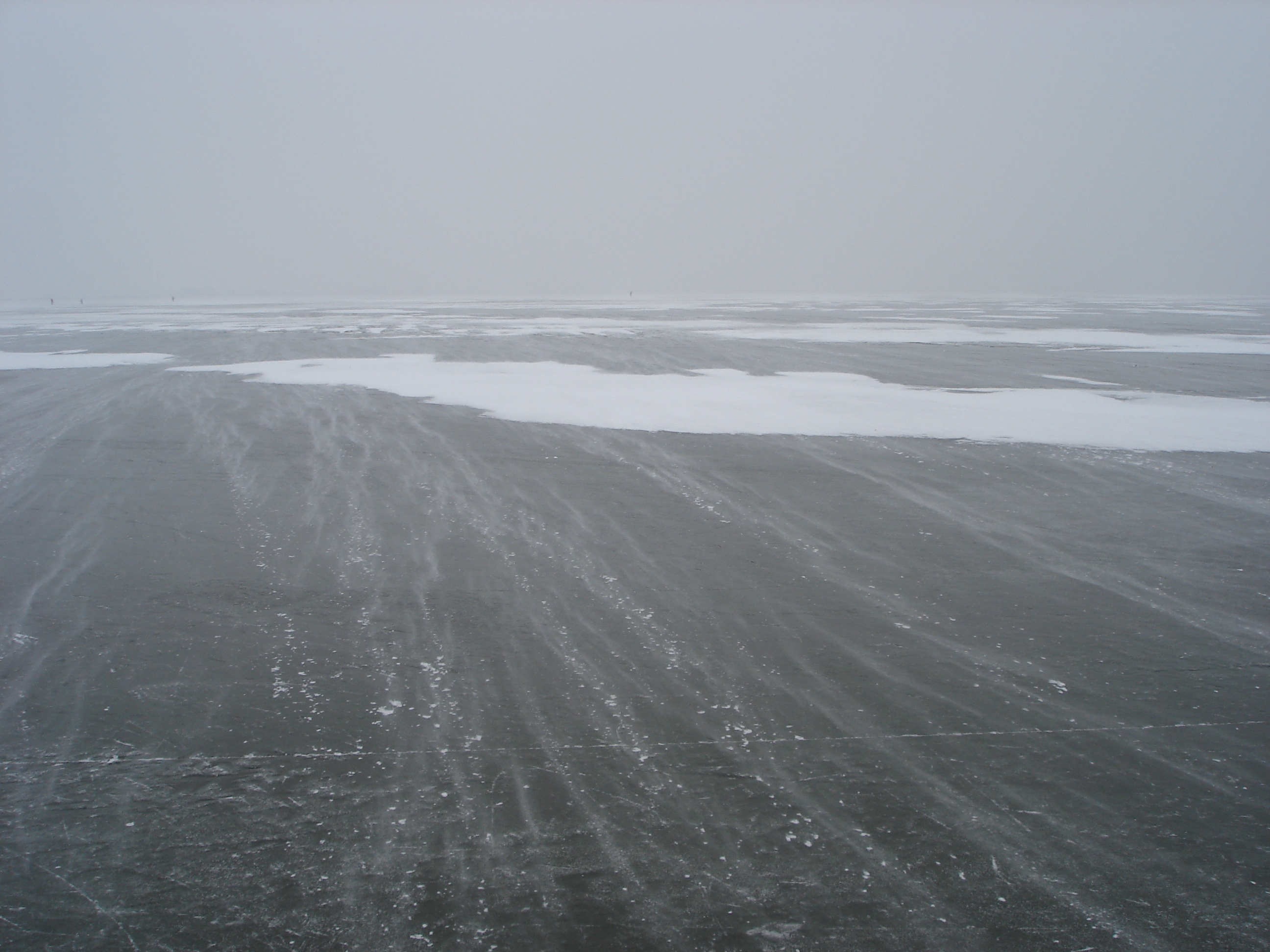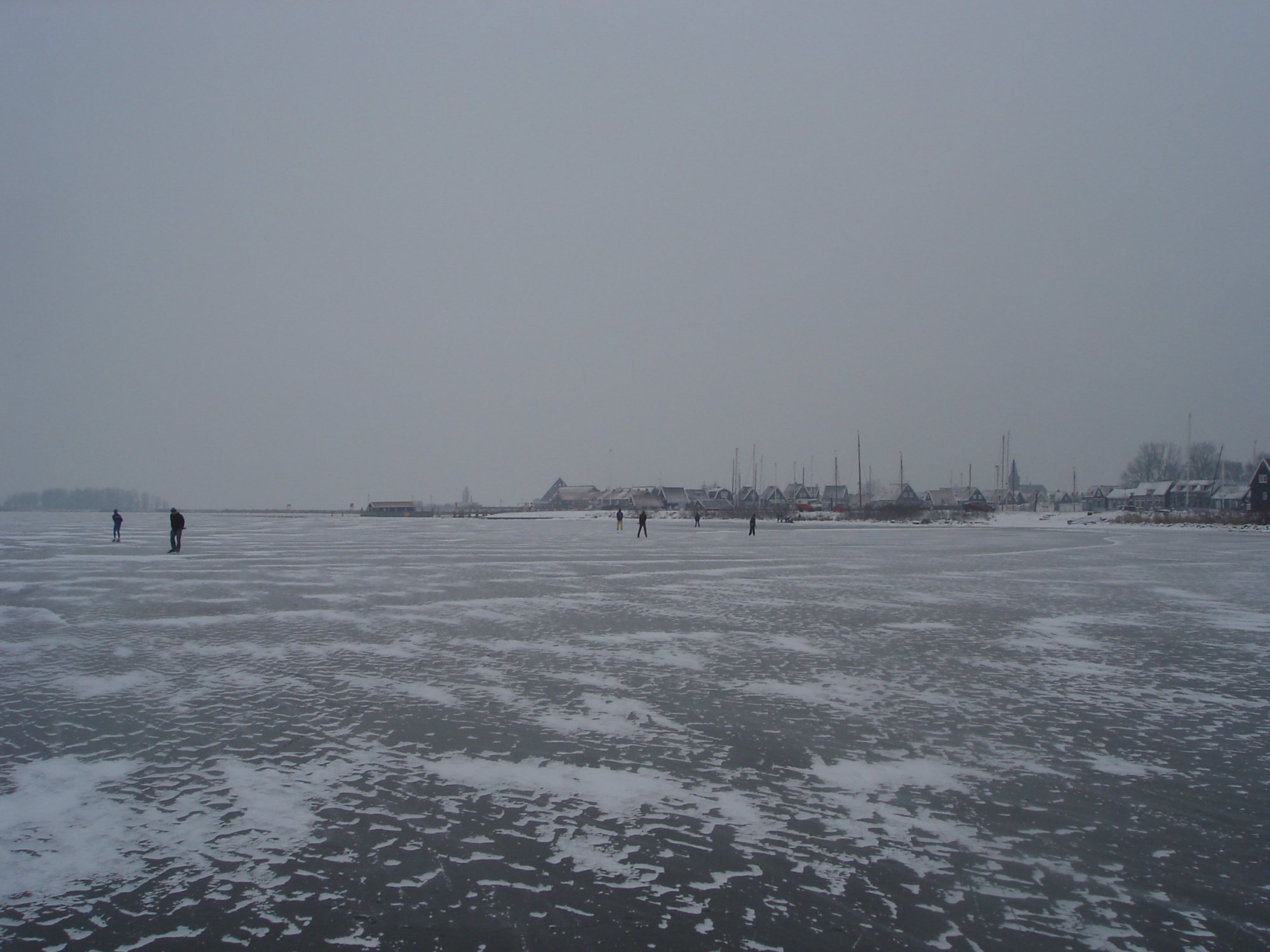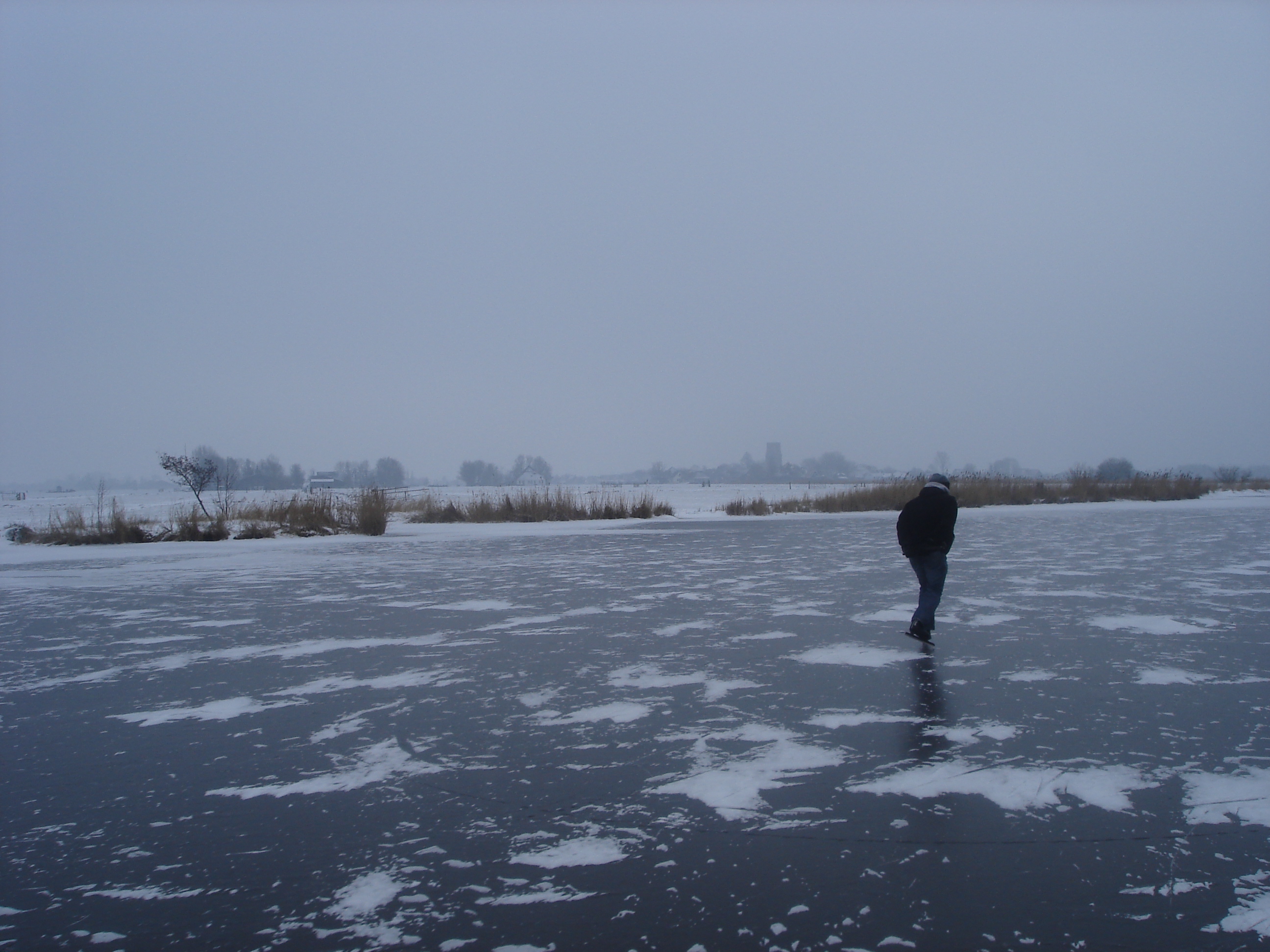 Het was de enige dag dat ik eens even tijd had om een leuk tochtje te maken. In de ochtend nog even een tentamen geleerd en daarna met een studiegenootje en aanhang richting Gouwzee gegaan om te schaatsen. Het sneeuwde bij vertrek uit Amsterdam matig, maar eenmaal aangekomen (rond een uur of 1) was de sneeuwval tot een minimum afgenomen en door de harde wind was het meeste ijs gewoon schoon (sneeuwhopen). Er was trouwens ook een stukje baan geschoven.