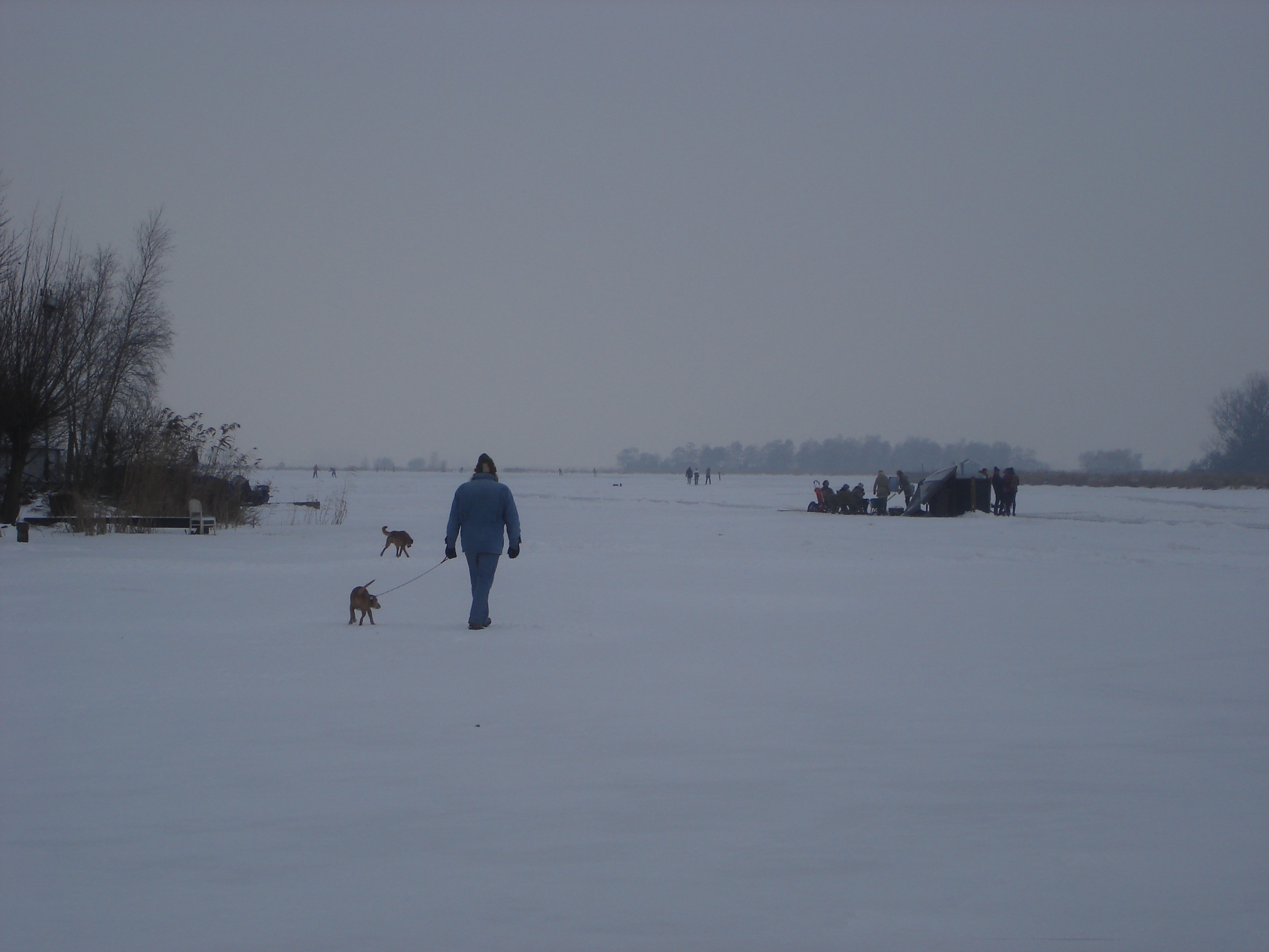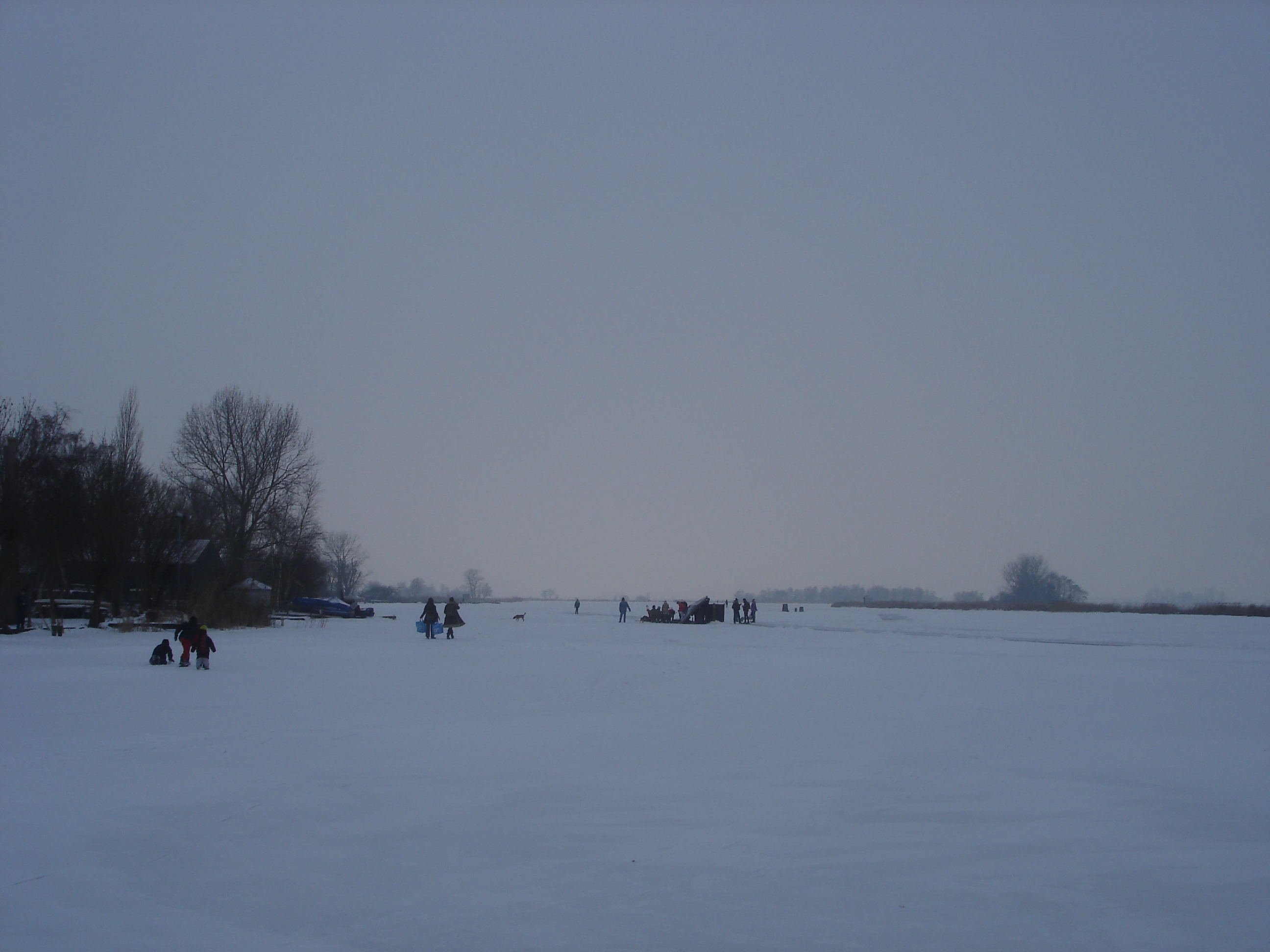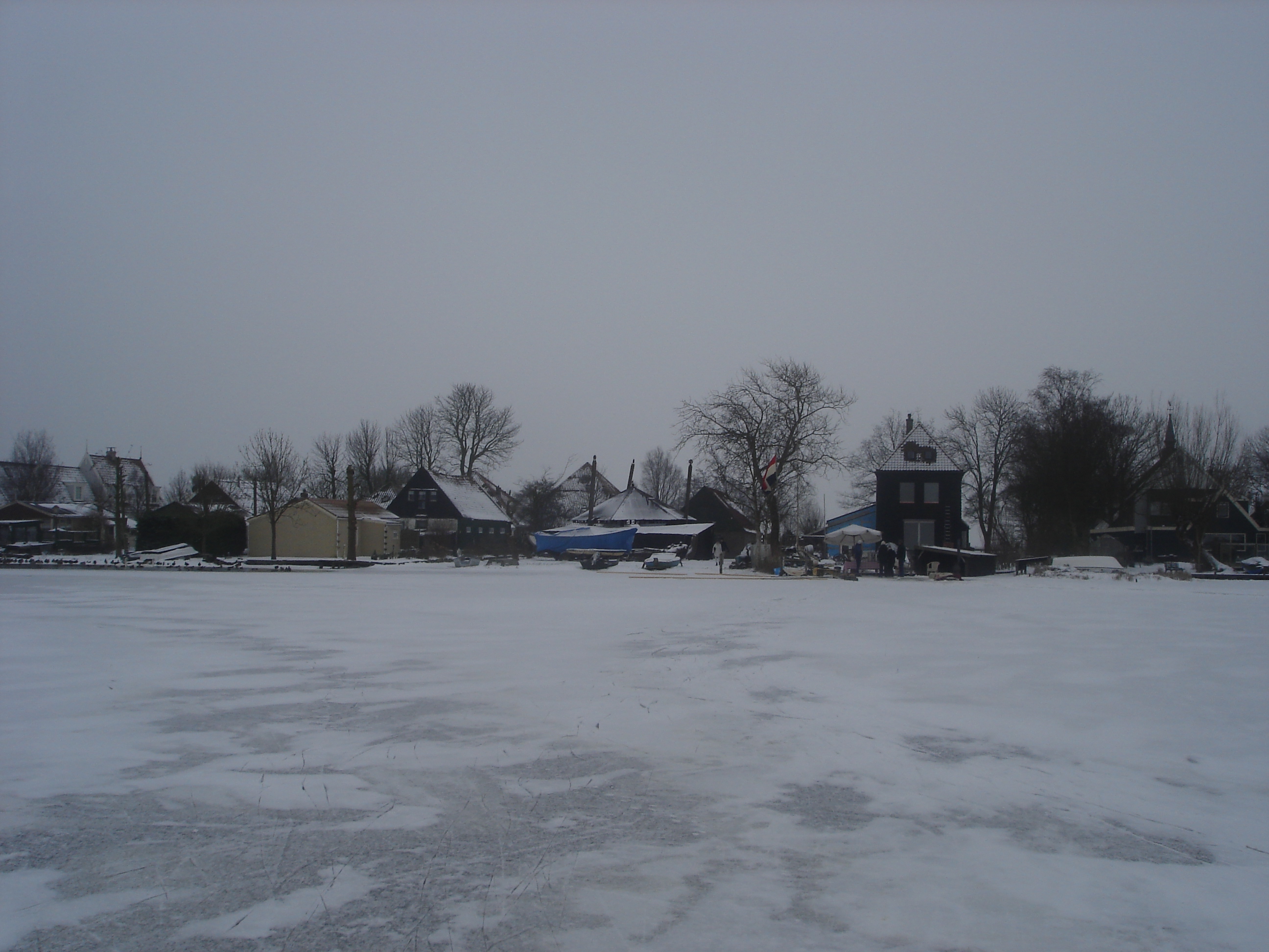 Opstappen in de Nes, bij Uitdam. Hier was een zopie-tentje waar opstappen makkelijk was (bankjes). Eerst een rondje over het geveegd baantje, en daarna richting Hemmeland geschaatst (soms filerijden met wind in de rug). Diezelfde wind maakte de terugweg uiteraard minder relaxed, maar was wel goed voor het "'63-gevoel"