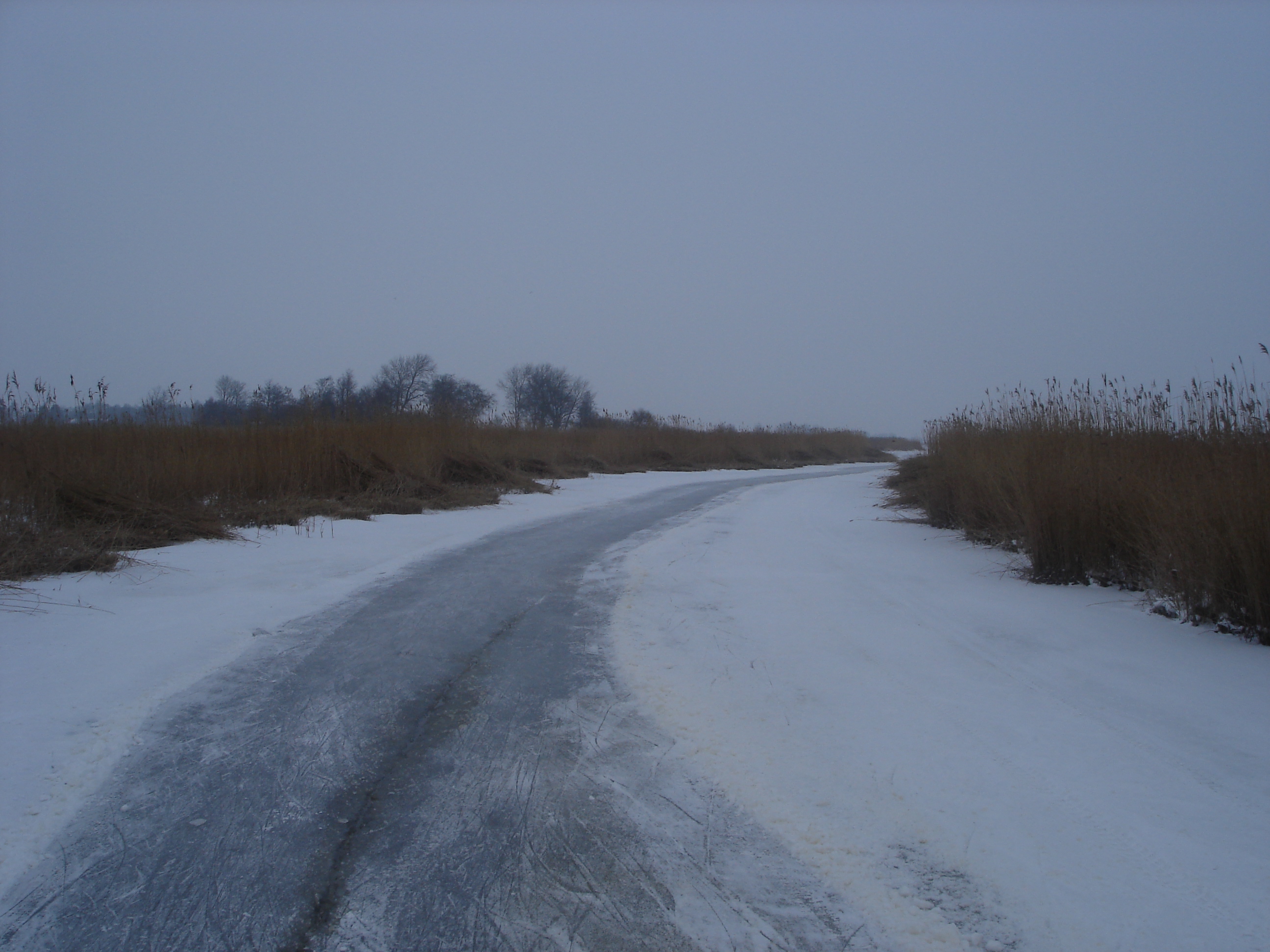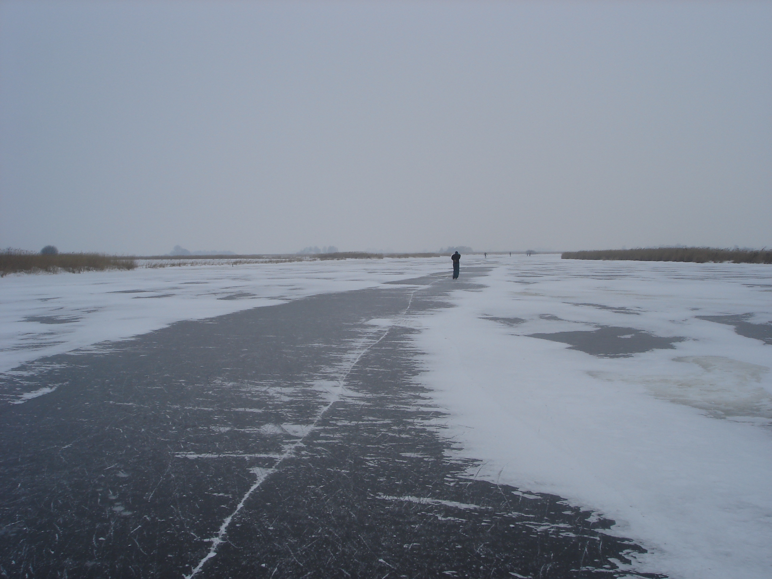 Hierna zijn we doorgeschaatst naar de Ransdorperdie. Even over een nauw slootje, waarna het water/ijs weer breder werd.