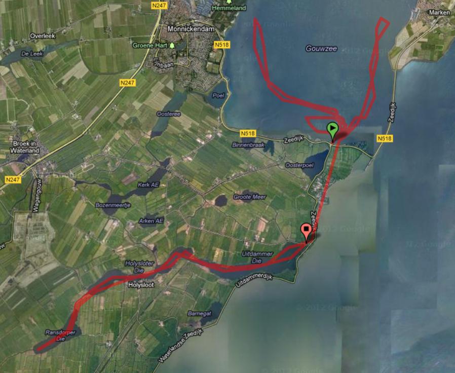 Globaal de route. De verplaatsing van Gouwzee naar de Uitdammerdie was uiteraard per auto. In totaal die middag 25km geschaatst.