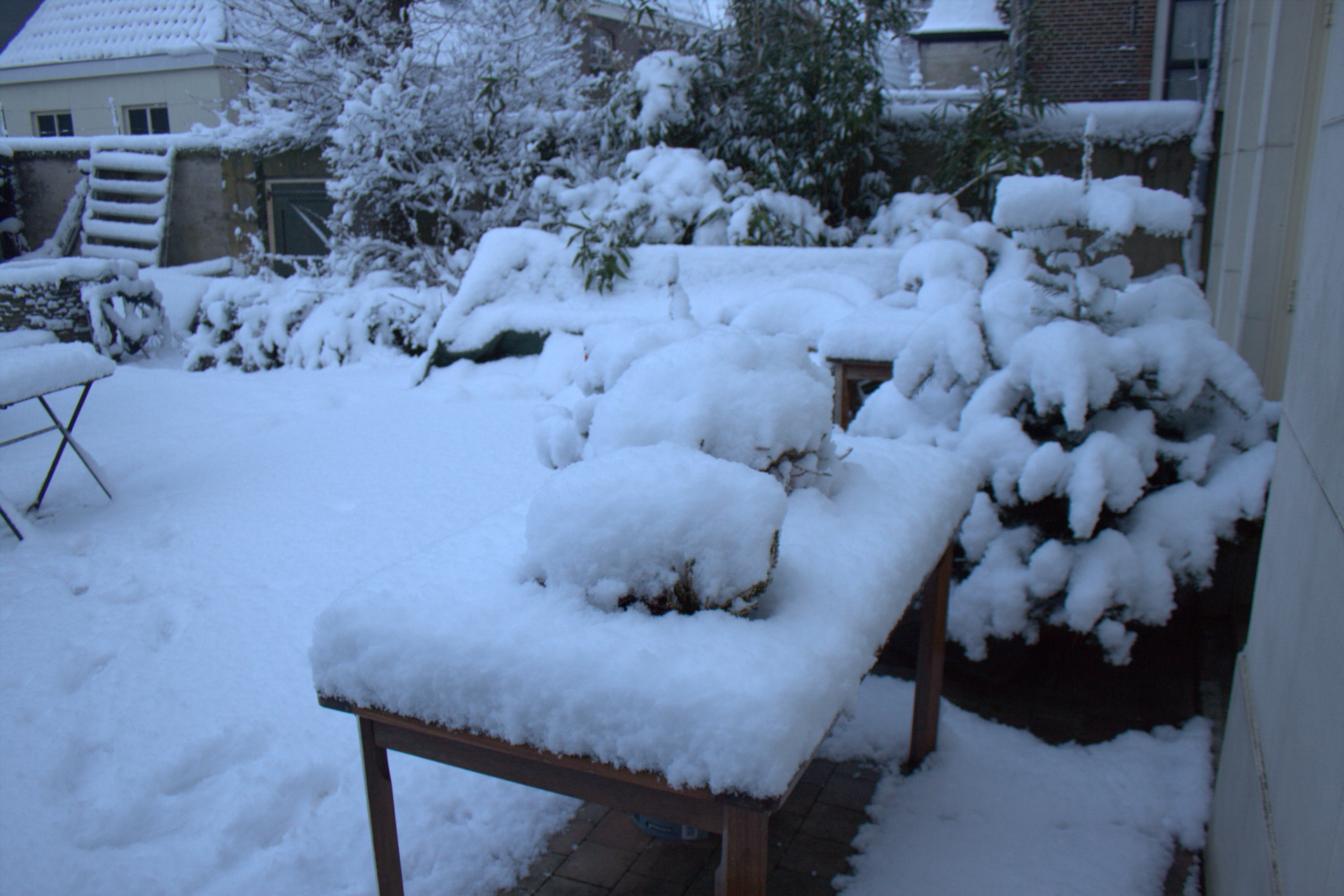Het was echt een totale verassing. Ik keek naar buiten en dacht. Hé hoeveel??? Even goed kijken.! En maar meteen met de camera even op stap gegaan. Het schommelt tussen de 10 op warmere straat tot 16 op het gras en tafels. Prima zondag zo!