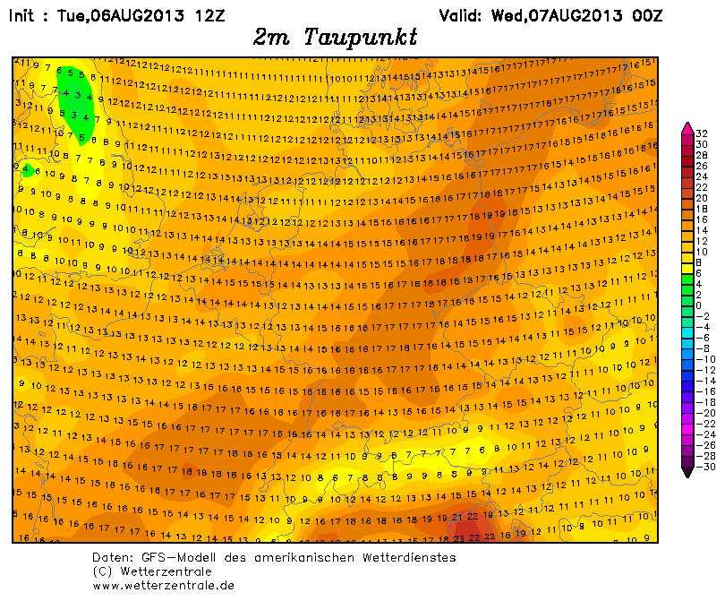 Qua dauwpunt zit GFS nu wel goed want mijn weerstation laat een DP zien van 14 momenteel wat aardig overeen komt met de berekening.