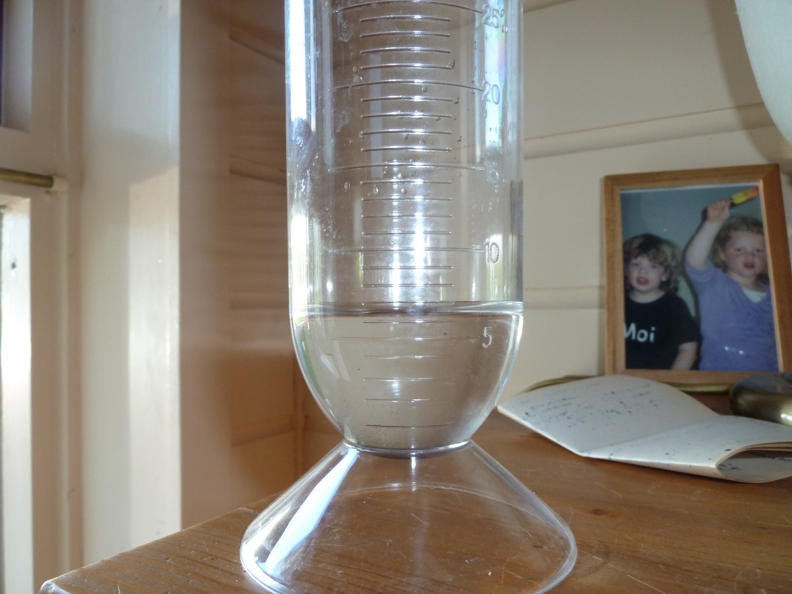 Heb onlangs een duplicaat van een Hellmann-regenmeter aangeschaft. Nu zie ik bij het aflezen steeds een licht omhoogstaande rand op het scheidingvlak aan de binnenzijde van het maatglas. Hoe lees je nu de hoeveelheid gevallen neerslag goed af?