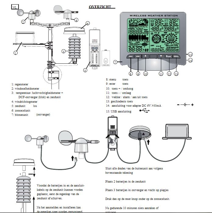 Van de regenmeter naar de zender is het bedraad door middel van een UTP aansluiting.