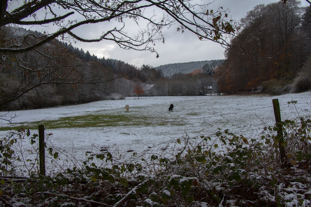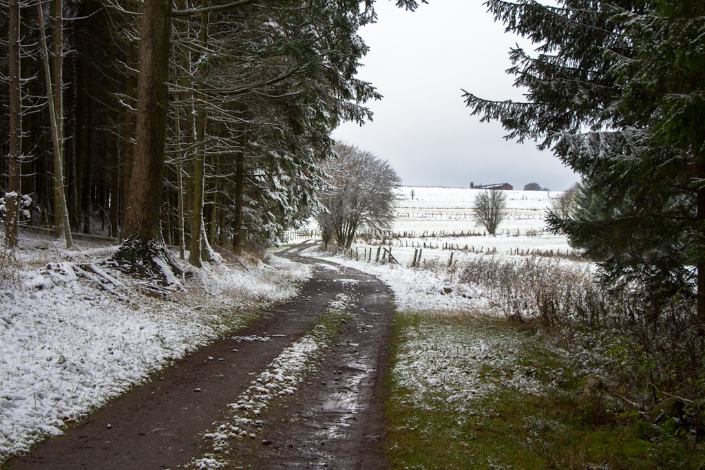 Nu hebben de Ardennen al 2x eerder deze maand een traktatie gekregen van het witte goud maar bleef dit beperkt tot een dun waasje en het bleef slechts enkele uren liggen, verder ook druk met werk dus ging het toen niet.