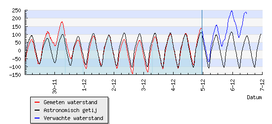 Het is morgenavond 23.10 uur hoogwater hier, verwachte stand +2.50 m NAP
