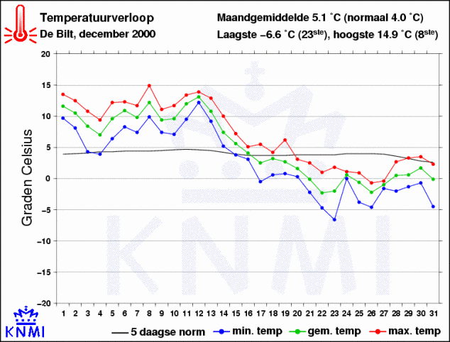 Met een temperatuur boven de 10 graden de eerste 14 dagen. Het vervolg was toch wel licht winters (witte kerst)
