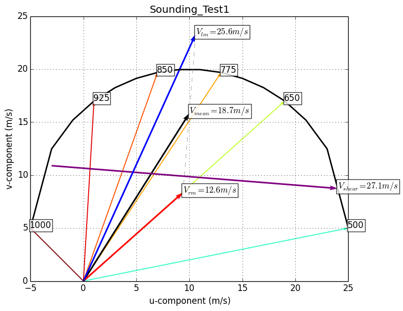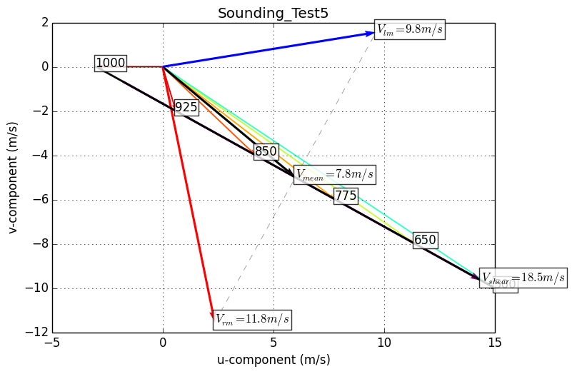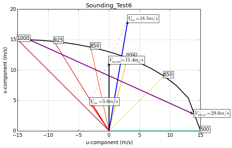 Als toevoeging nog een aantal theoretische hodogrammen hieronder. Aangezien ik nu toch een scriptje heb dat een hodogram kan plotten voor elk willekeurig windprofiel, kan ik daar net zo goed gebruik van maken.