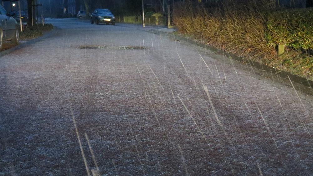 Stevige plensregens hebben hier ingezet bij 4,5 graad