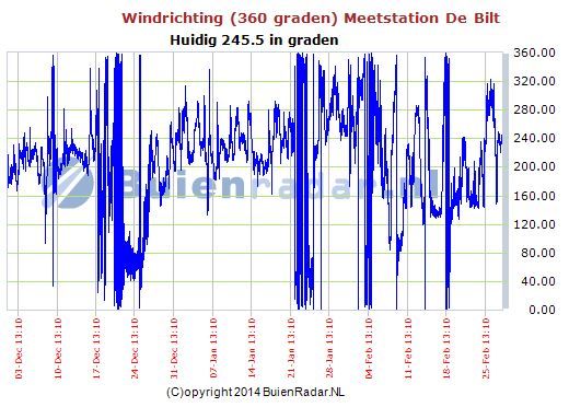 Veel meer variatie en ook een meer westelijke windcomponent.