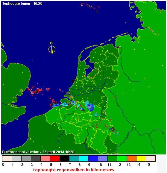 Het belangrijkste aandachtspunt is de ontwikkeling van de buien. Alle modellen geven weer dat de buien op de vore ontstaan. Elders zorgt een inversie rond 5000 vt ervoor dat de buienvorming geblokkeerd wordt. Op de vore is de (MU) Cape 1000-1500 J/kg, de schering is minder dan donderdag, in de orde 20-25 kn, met name voor het zuidwesten. Daarmee waarschijnlijk wat minder organisatie dan donderdag, maar multicel lijkt wel degelijk mogelijk. Aantal ontladingen kan fors zijn, Harmonie komt met een maximum tot 160 ontladingen per 5 minuten (boven België). Zwaartepunt van de buien zal in het zuidwesten liggen. KOUW komt met kansen van 70%, kansen op meer dan 100 ontladingen erg klein.