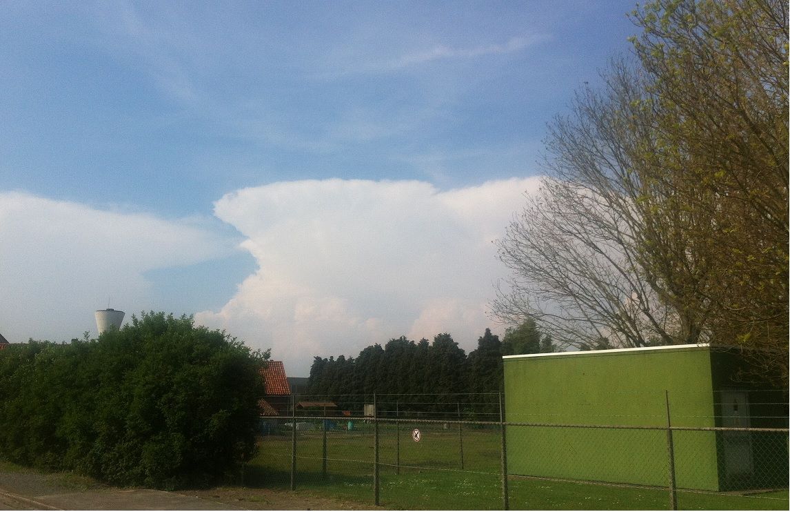 Alweer, deze keer ontploft het allemaal net ten noorden.. Ook ik heb zicht op de explosieve buien maar ik heb ze liever in mijn tuin...
