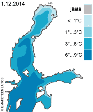 De Oostzee of Baltische Zee is vergeleken met 'de normaal' op veel plekken nog flink te warm. 1e kaartje is actueel. 2e plaatje is 'de normaal' Woordje jäätä = ijs.