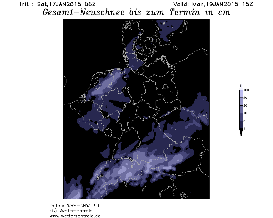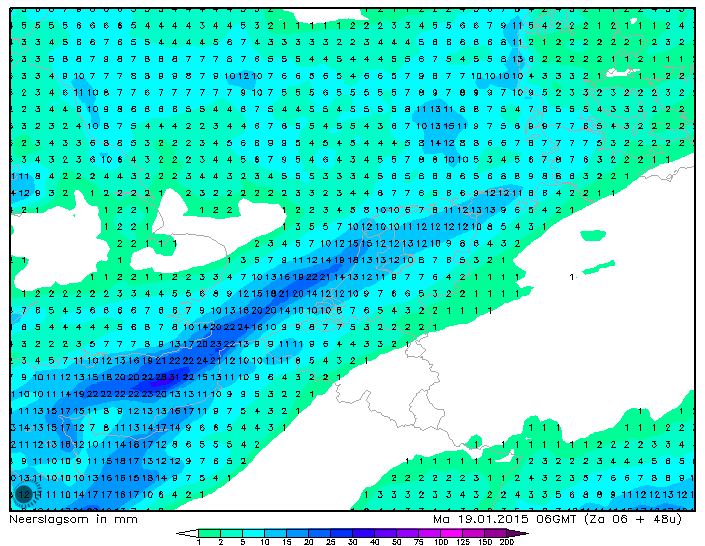 Interessant is wel de situatie van morgenmiddag/avond en nacht naar maandag. De neerslagband wordt door HIRLAM06z wat noordwestelijker gepositioneerd dan bij EC. GFS en WRF zijn in de 06z run, qua positionering van de neerslag, meer richting HIRLAM toegekropen waarbij de neerslagintensiteit ook hoger is dan in voorgaande runs. HIRLAM is nog niet heel gortig qua neerslaghoeveelheden (max 12 mm) waarbij GFS tot plaatselijk 20 mm komt. Ervaring leert dat GFS vaak iets overdrijft met de neerslaghoeveelheden, maar het is zeker iets om in de gaten te houden. Mocht de intensiteit van die neerslagband toenemen dan heeft dat gevolgen voor de fractie droger sneeuwval en het ontstaan van een mogelijk sneeuwdek. Het KNMI houdt al rekening met het ontstaan van een sneeuwdek, zie Guidance van vanmorgen.