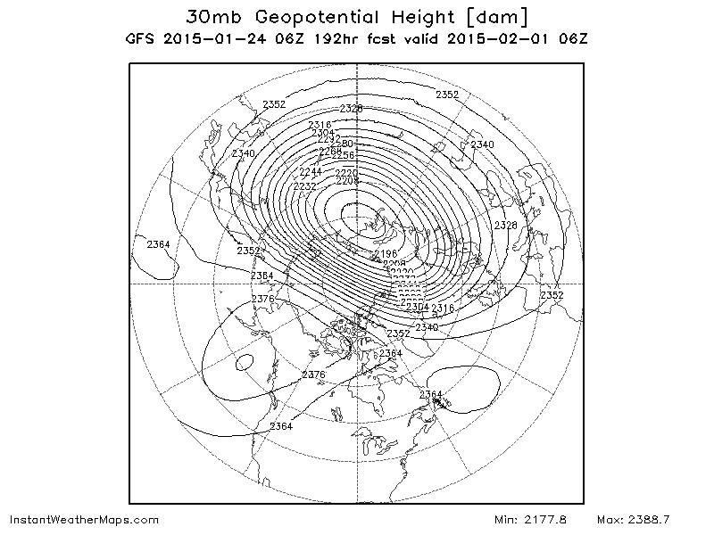 Diepe Eurotrog lijkt me goed gesteund/gedreven door de stratosferische ontwikkelingen. Als de vortex op hoogte lang genoeg in die hoek blijft zitten, geeft dat ons de mogelijkheid om aan een interessante synoptische situatie aan de grond "te werken". In deze run blijft de getoonde situatie tot in het GKB (+240) gehandhaafd. Ec steunt dit scenario vrij aardig.