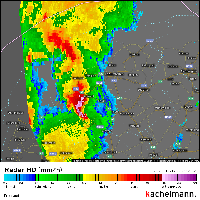 Ik heb gisteren als hulp gebruikt de uitvoer van de radar van Emden via Jeorg Kachelmann. De radarbeelden gecombineerd uit Den Helder en de Bilt gaven een gekke deactivering aan tegen de tijd dat die supercell bij Friesland aan wal kwam. Emden was het er niet mee eens en ik gelukkig ook niet.