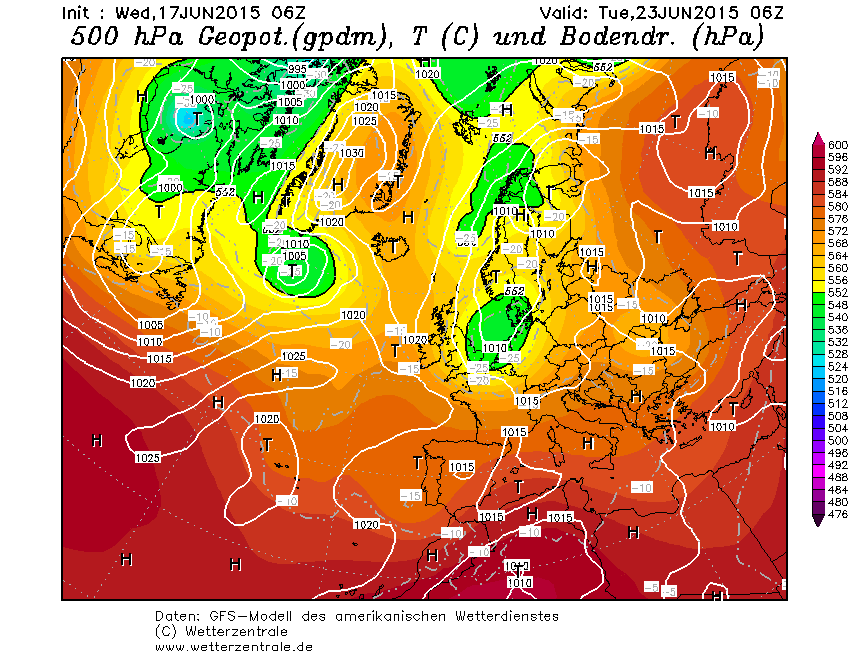 Wanneer komt er een al dan niet tijdelijke verlossing? Ik denk niet in juni helaas. Gisteren leken er voorzichtig wat tekenen van verbetering op middellange termijn maar zoals gewoonlijk dit voorjaar evolueert het uiteindelijk weer in benedennormale temperaturen voor de tijd van het jaar. Was het eerst zo dat het koel maar zonnig was, de komende week zal het niet alleen koel zijn maar ook bewolkt. Ik blijf duimen maar zoals in december het winterklokje tikt tikt nu het zomerklokje. De mooiste lange junidagen zullen bewolkt en kil gaan verlopen. Ik kom snel bij u terug en dan hoop ik met goed nieuws!