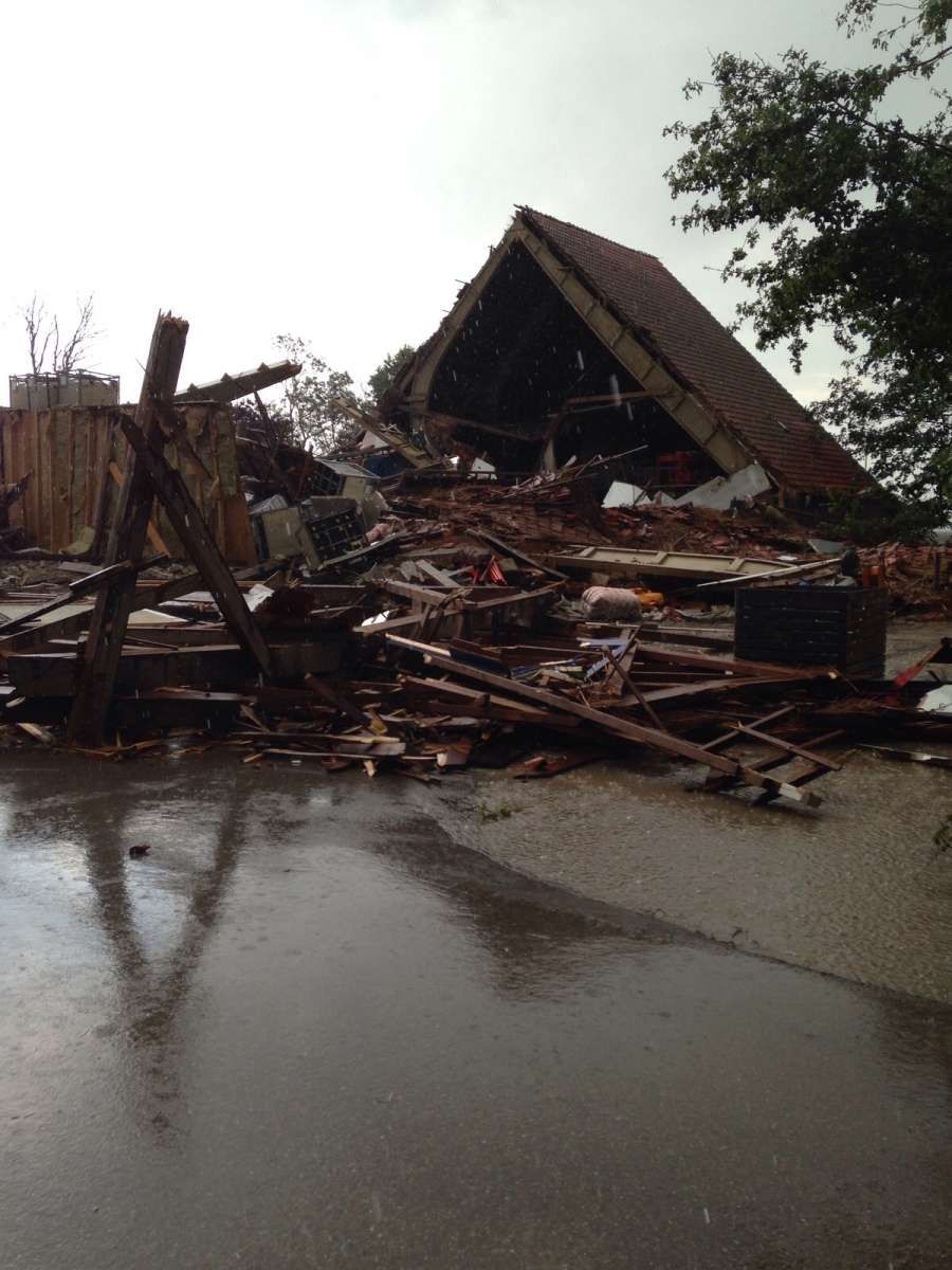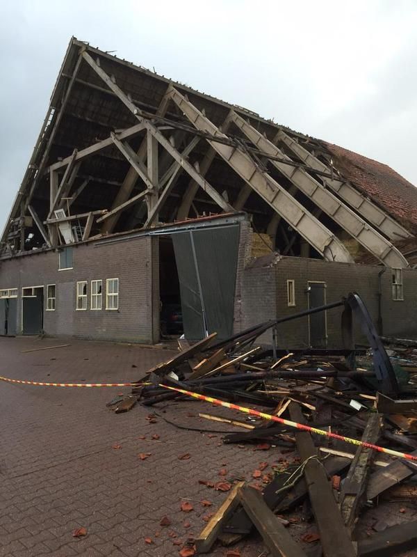 Eerst volgen schadefoto's van de twee zwaarste getroffen boerderijen. Onderaan staan twee video's met schadebeelden.